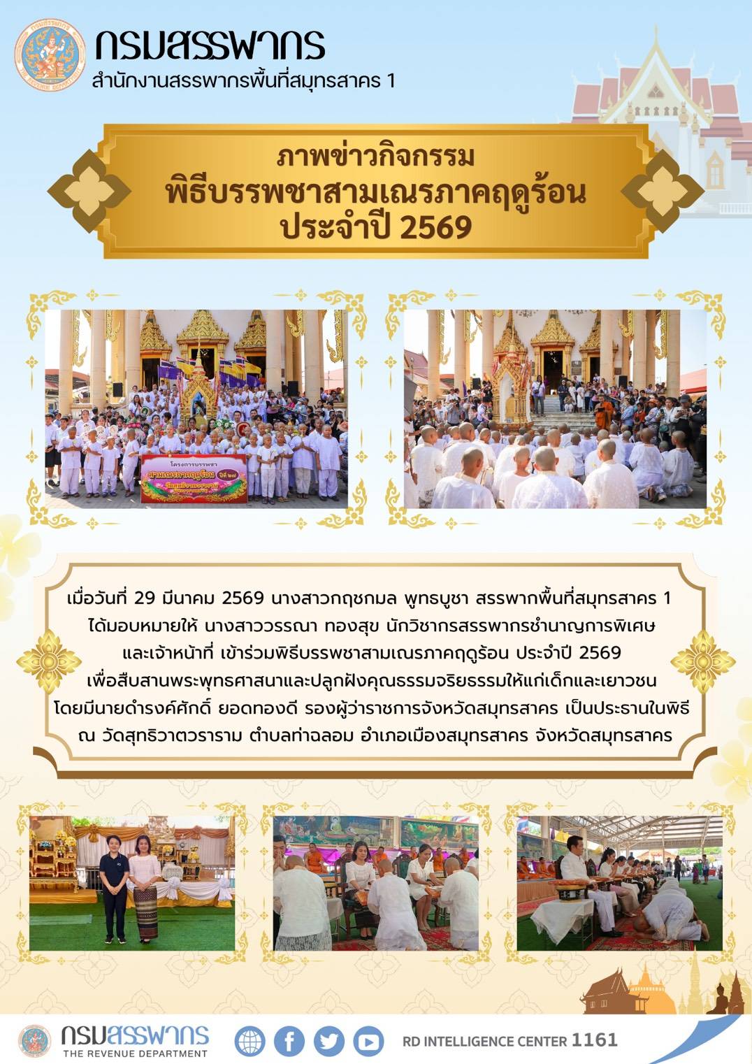 ภาพกิจกรรม สนง.สรรพากรพื้นที่สมุทรสาคร 1 เข้าร่วมพิธีบรรพชาสามเณรภาคฤดูร้อน ประจำปี 2569