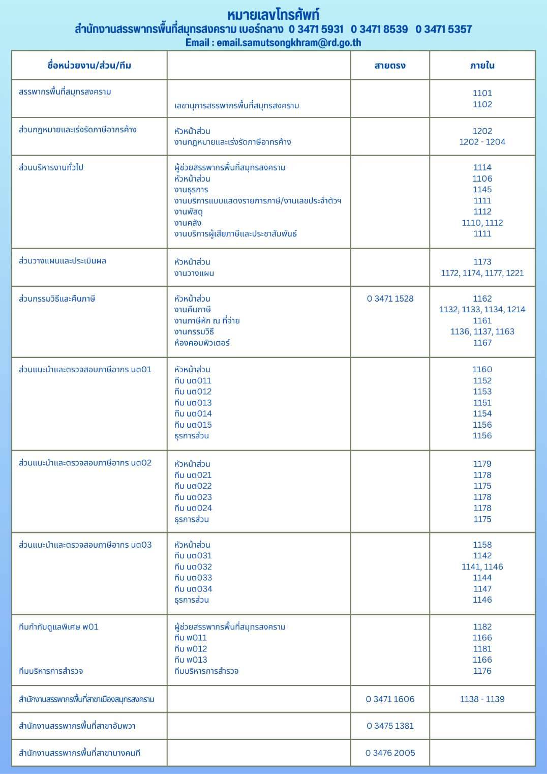 หมายเลขโทรศัพท์ สำนักงานสรรพากรพื้นที่สมุทรสงคราม