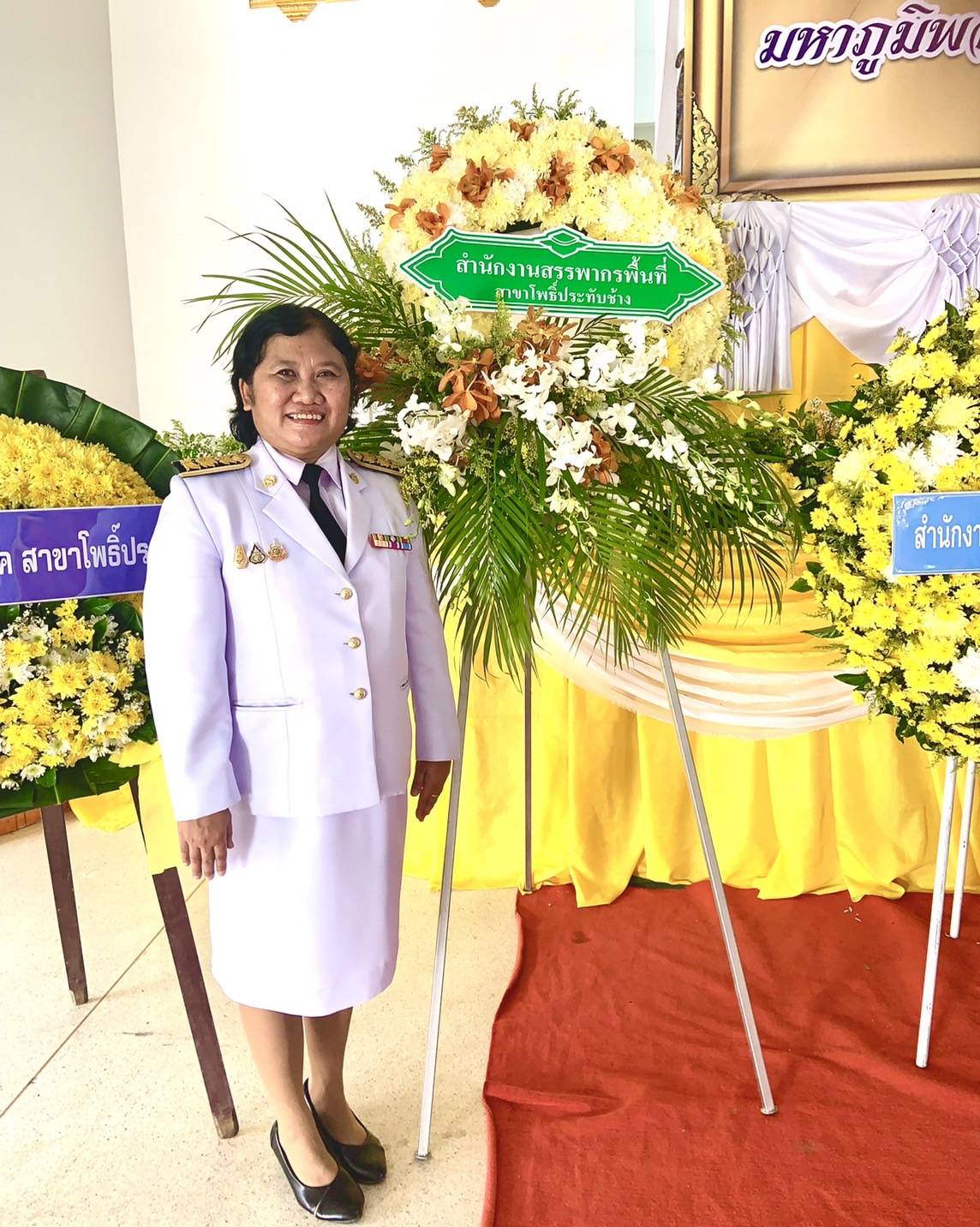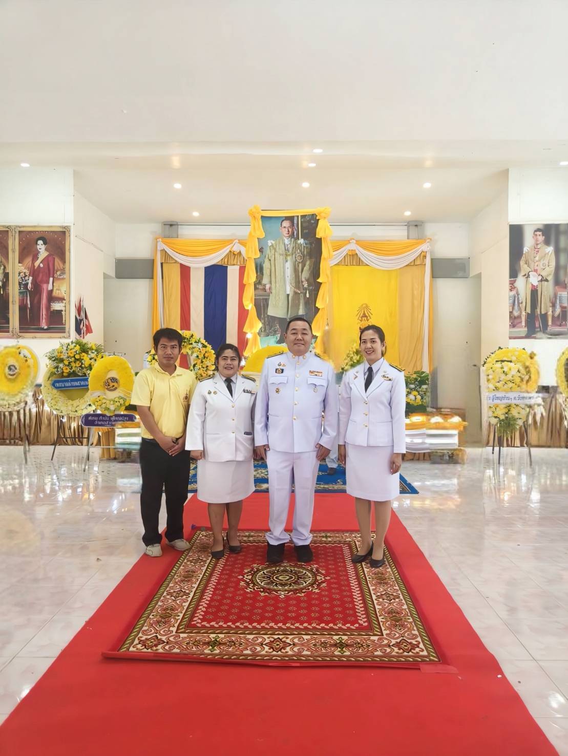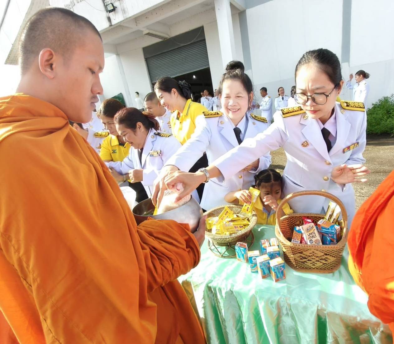 พิธีสวดพระพุทธมนต์ พิธีวางพวงมาลาและถวายราชสดุดี และพิธีตักบาตรถวายราชกุศล เนื่องในวันนวมินทรมหาราช