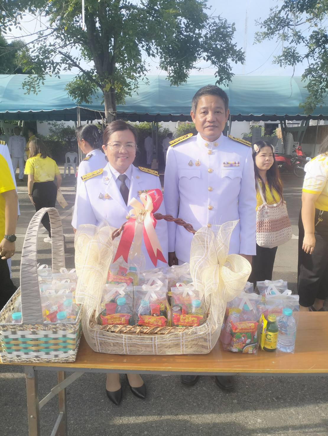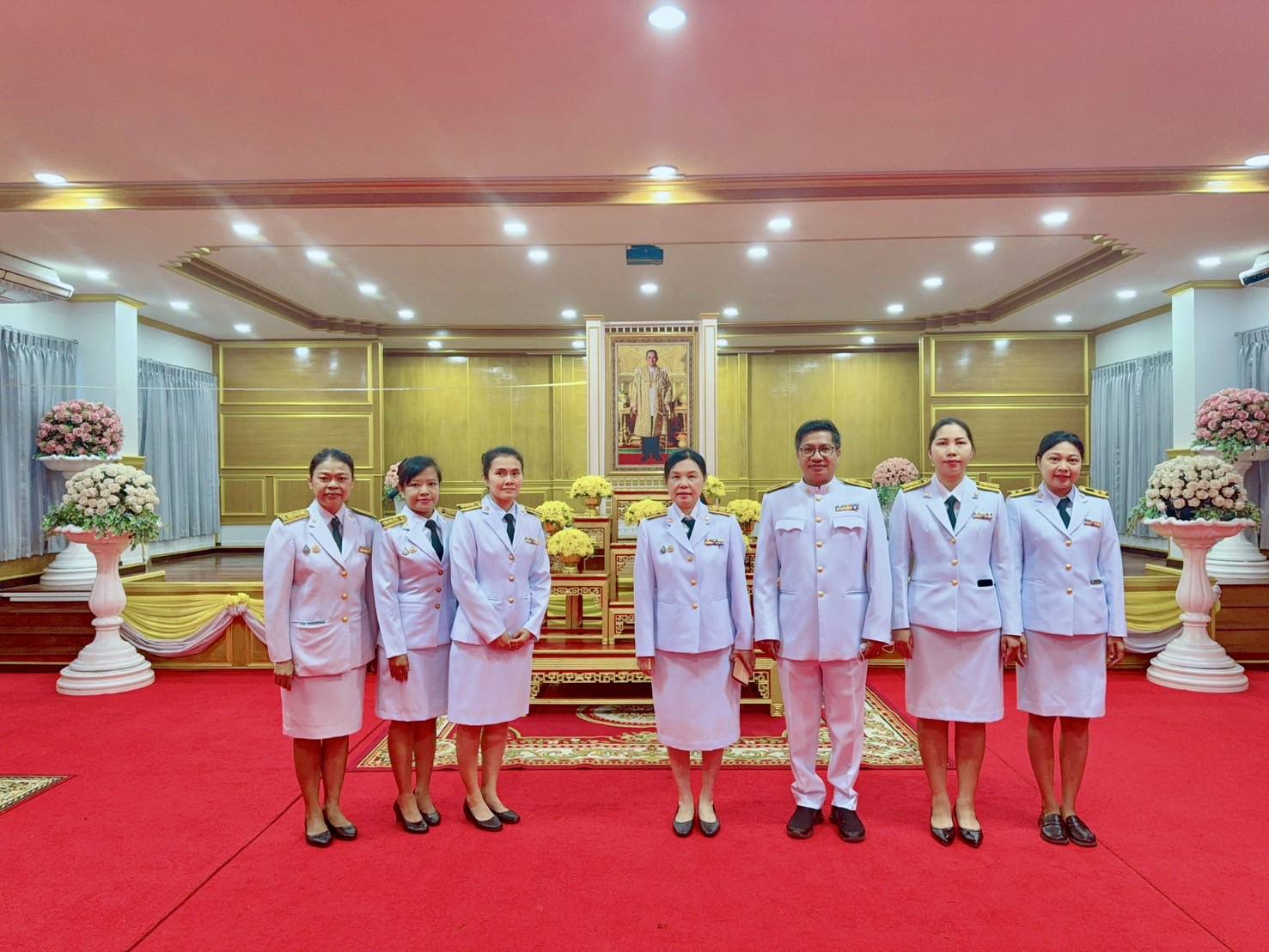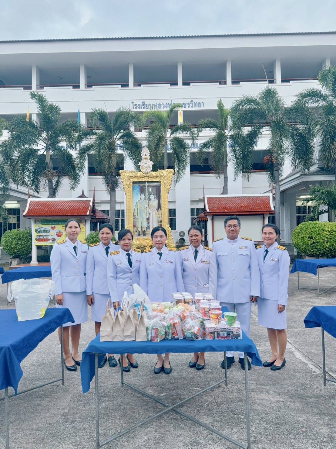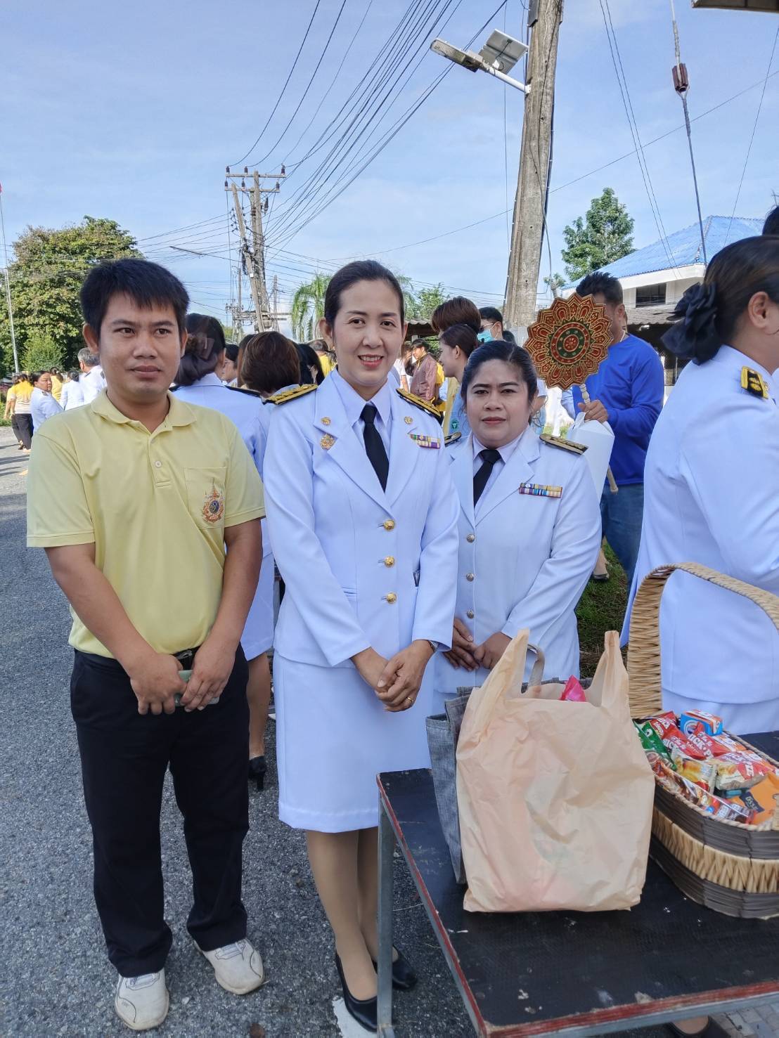 พิธีสวดพระพุทธมนต์ พิธีวางพวงมาลาและถวายราชสดุดี และพิธีตักบาตรถวายราชกุศล เนื่องในวันนวมินทรมหาราช