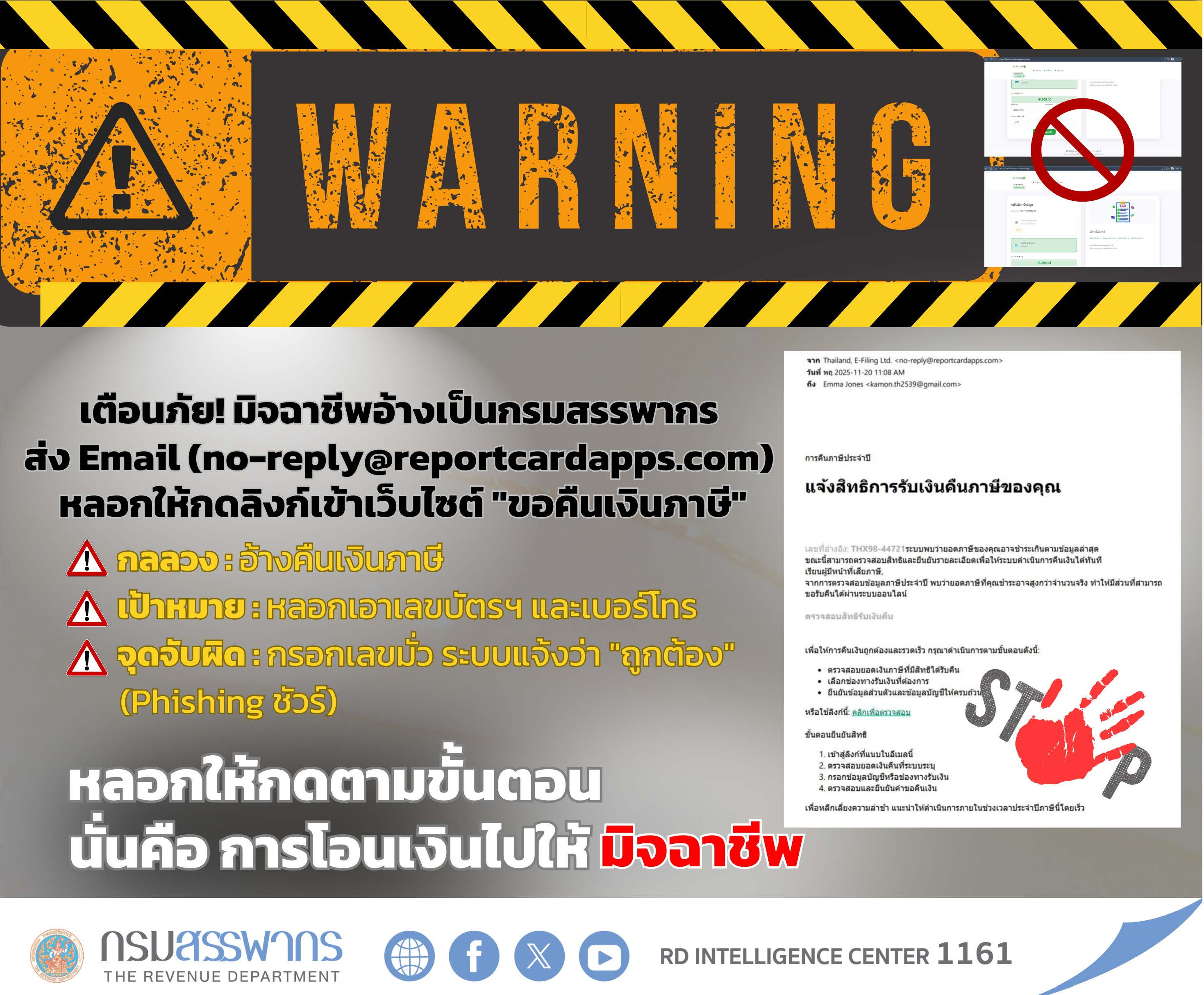 เตือนภัยด่วนที่สุด! ระวังมิจฉาชีพส่งอีเมล์ปลอม อ้าง “คืนเงินภาษี”