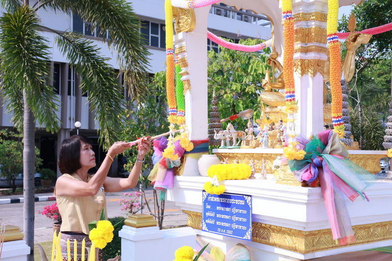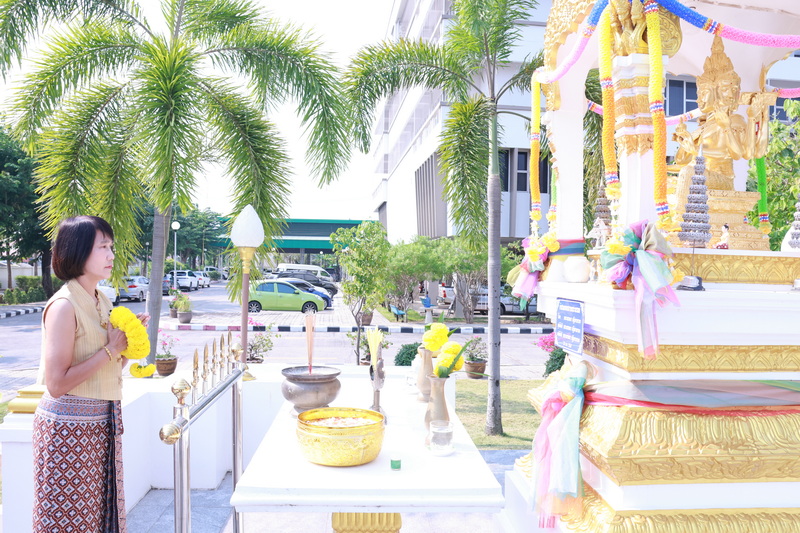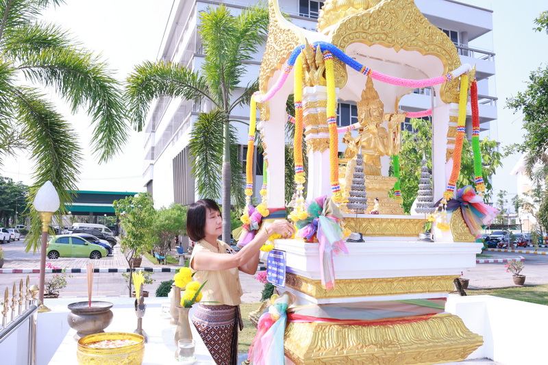 นางสาวนุศรา กลิ่นกระจาย สรรพากรพื้นที่พิษณุโลก พร้อมด้วยคณะผู้บริหาร ข้าราชการและลูกจ้าง ร่วมสักการะพระพรหมสิ่งศักดิ์สิทธิ์ประจำสำนักงานสรรพากรพื้นที่พิษณุโลก และสรงน้ำพระพุทธรูป พระบรมสารีริกธาตุ พระอุเทนธรรมราชา และร่วมรดน้ำขอพรจากท่านสรรพากรพื้นที่พิษณุโลก เนื่องในเทศกาลวันสงกรานต์ประจำปี พ.ศ. 2569 เพื่อสืบสานวัฒนธรรม และประเพณีอันดีงามของไทย เมื่อวันที่ 7 เมษายน 2569 ณ สำนักงานสรรพากรพื้นที่พิษณุโลก ตำบลหัวรอ อำเภอเมืองพิษณุโลก จังหวัดพิษณุโลก