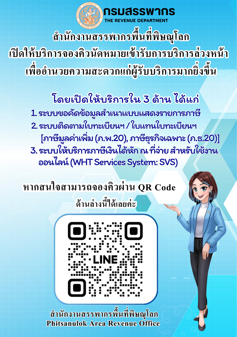 ประชาสัมพันธ์การให้บริการจองคิวของสำนักงานสรรพากรพื้นที่พิษณุโลก