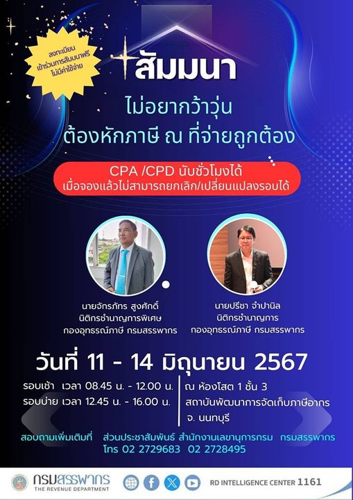 จองที่นั่งสัมมนาได้ที่เว็บไซต์กรมสรรพากร https://interweb1.rd.go.th/publish/seminar/register.php...