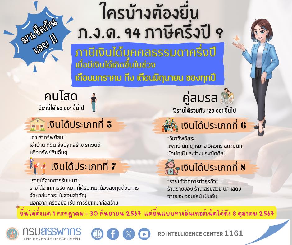 RD Intelligence Center : 1161 ยื่นแบบ ภ.ง.ด.94 ใครบ้างต้องยื่น ภ.ง.ด. 94 ภาษีเงินได้บุคคลธรรมดาครึ่งปี