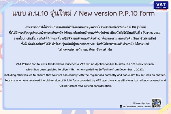 VAT Refund for Tourists Thailand has launched a VAT Refund Application for Tourists (P.P.10) a new version.