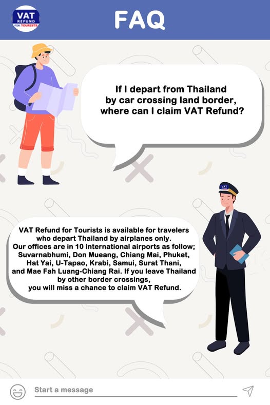 FAQ : If I depart from Thailand by car crossing land border, where can I claim VAT Refund?