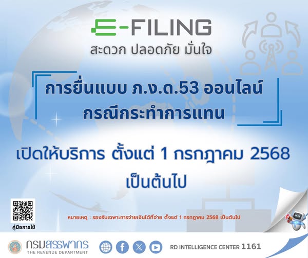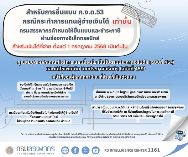 กรมสรรพากร (The Revenue Department) เปิดให้บริการใหม่! ผู้กระทำการแทน สามารถ ยื่นแบบ ภ.ง.ด.53 ออนไลน์ ในนามผู้จ่ายเงินได้ ผ่านระบบ e-Filing