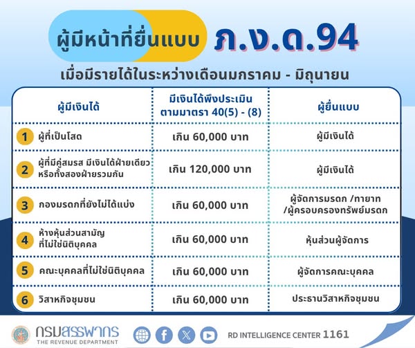RD Intelligence Center : 1161 ถึงเวลายื่นภาษีเงินได้บุคคลธรรมดา ภ.ง.ด.94 ปีภาษี 2568