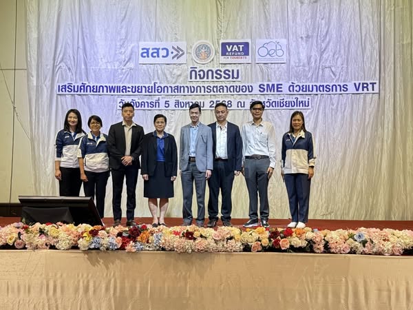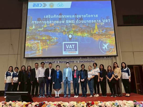 กลุ่มบริหารการคืนภาษีมูลค่าเพิ่มให้แก่นักท่องเที่ยว เข้าร่วมกิจกรรมเสริมศักยภาพและขยายโอกาสทางการตลาดของ SME ด้วยมาตรการ VRT ซึ่งจัดโดยสำนักงานส่งเสริมวิสาหกิจขนาดกลางและขนาดย่อม ในการนี้ได้บรรยายในหัวข้อ “การเสริมศักยภาพ SME สู่การเป็นผู้ประกอบการ VRT/e-VRT และสิทธิประโยชน์ที่จะได้รับ” ให้แก่ผู้ประกอบการ SME เมื่อวันอังคารที่ 5 สิงหาคม 2568 ณ โรงแรมเชียงใหม่แกรนด์วิว จังหวัดเชียงใหม่
