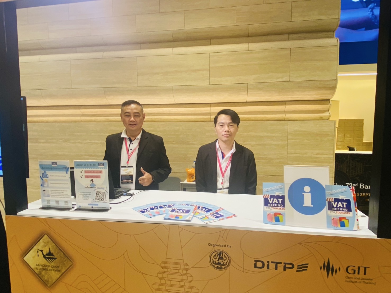 กลุ่มบริหารการคืนภาษีมูลค่าเพิ่มให้แก่นักท่องเที่ยว กรมสรรพากร ได้เข้าร่วมงานจัดแสดงสินค้าอัญมณีและเครื่องประดับครั้งที่ 72 (The 72 Bangkok Gems and Jewelry Fair)