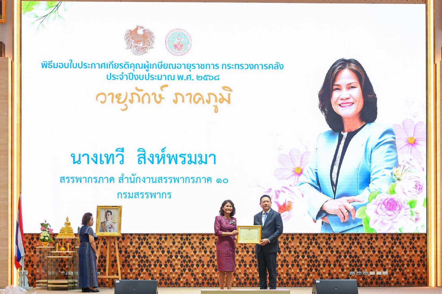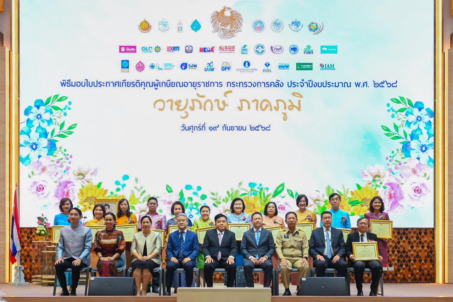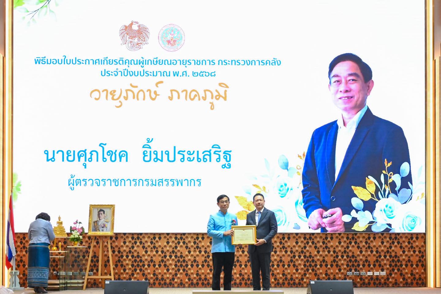 พิธีมอบใบประกาศเกียรติคุณผู้เกษียณอายุราชการ ประจำปีงบประมาณ พ.ศ. 2568 นายลวรณ แสงสนิท ปลัดกระทรวงการคลัง เป็นประธานในพิธีมอบใบประกาศเกียรติคุณผู้เกษียณอายุราชการ ประจำปีงบประมาณ พ.ศ. 2568 โดยมีนายปิ่นสาย สุรัสวดี อธิบดีกรมสรรพากร พร้อมคณะผู้บริหารที่เกษียณอายุราชการของกรมสรรพากร เข้าร่วมพิธีเมื่อวันที่ 19 กันยายน 2568 ณ ห้องกำปั่นทอง ชั้น 21 อาคาร 150 ปี กระทรวงการคลัง