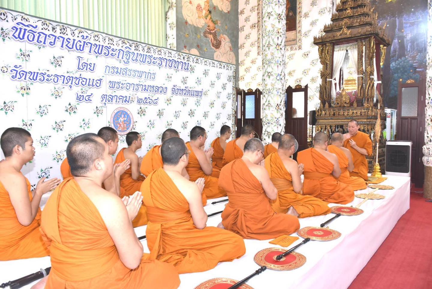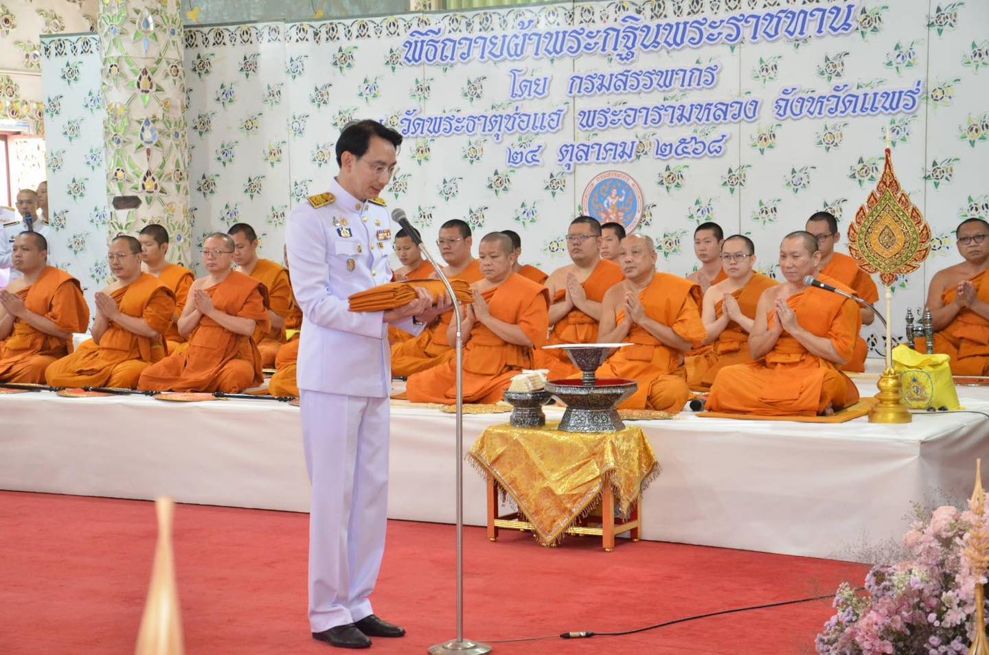 พิธีถวายผ้าพระกฐินพระราชทาน กรมสรรพากร ประจำปีพุทธศักราช 2568 พระบาทสมเด็จพระปรเมนทรรามาธิบดีศรีสินทรมหาวชิราลงกรณ พระวชิรเกล้าเจ้าอยู่หัว ทรงพระกรุณาโปรดเกล้าโปรดกระหม่อม พระราชทานผ้าพระกฐิน ประจำปีพุทธศักราช 2568 ตามที่กรมสรรพากรขอรับพระราชทานน้อมนำไปถวายแด่พระสงฆ์จำพรรษากาลถ้วนไตรมาส ณ วัดพระธาตุช่อแฮ พระอารามหลวง ตำบลช่อแฮ อำเภอเมืองแพร่ จังหวัดแพร่ โดยมี นายปิ่นสาย สุรัสวดี อธิบดีกรมสรรพากรเป็นประธานในพิธี พร้อมด้วยคณะผู้บริหาร ข้าราชการ พนักงาน และเจ้าหน้าที่ของกรมสรรพากร ตลอดจนประชาชนทั่วไปเข้าร่วมในพิธี ทั้งนี้ กรมสรรพากรได้สมทบทุนกับผู้มีจิตศรัทธาร่วมทำบุญถวายปัจจัยเพื่อบำรุง และบูรณะพระอารามในพิธีถวายผ้าพระกฐินพระราชทาน เป็นจำนวนเงิน รวม 6,379,999.99 บาท นอกจากนี้ กรมสรรพากรยังได้มอบเงินบำรุงการศึกษา และบำรุงหน่วยงานจำนวนทั้งสิ้น 17 หน่วยงาน เมื่อวันที่ 24 ตุลาคม 2568