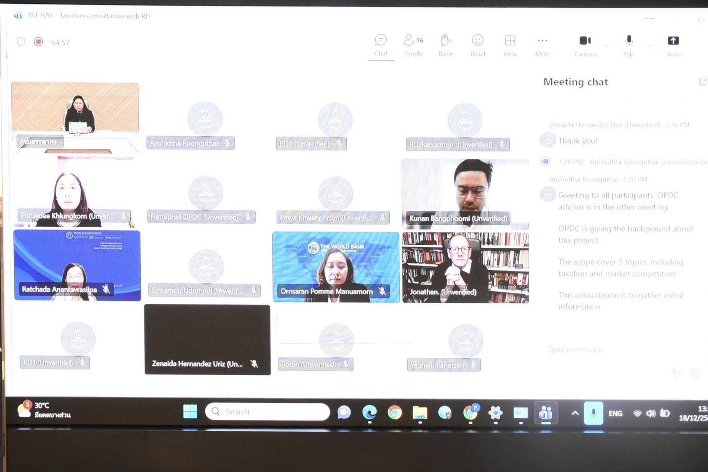 การประชุม โครงการศึกษาการปรับปรุงสภาพแวดล้อมเพื่อสนับสนุนการประกอบธุรกิจของประเทศไทยตามแนวทางการประเมิน Business Ready (B-READY) นางสาวภิญญู กำเนิดหล่ม ที่ปรึกษาด้านเทคโนโลยีสารสนเทศและการสื่อสาร เป็นประธานการสัมภาษณ์ภายใต้โครงการศึกษาการปรับปรุงสภาพแวดล้อมเพื่อสนับสนุนการประกอบธุรกิจของประเทศไทยตามแนวทางการประเมิน Business Ready (B-READY) โดยสำนักงานคณะกรรมการพัฒนาระบบราชการ และ ธนาคารโลก โดยมีคณะผู้บริหารและเจ้าหน้าที่กรมสรรพากรเข้าร่วมด้วย เมื่อวันที่ 18 ธันวาคม 2568 ทางระบบออนไลน์ ณ ห้องประชุมพระอุเทน 5 ชั้น 2 อาคารกรมสรรพากร
