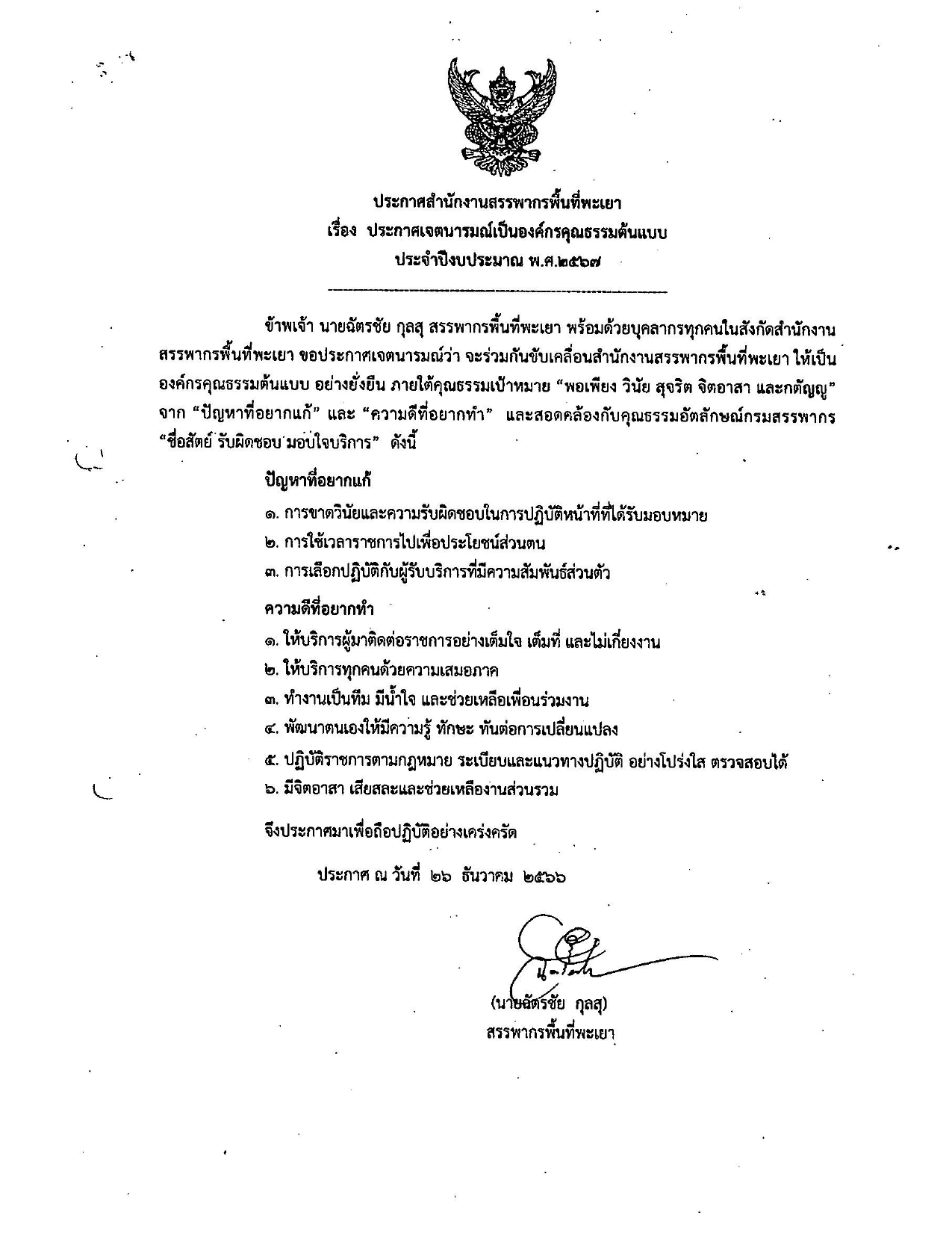 สำนักงานสรรพากรพื้นที่พะเยา No Gift Policy