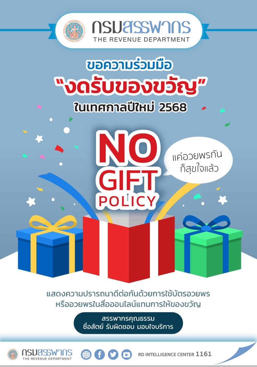 กรมสรรพากร ขอประกาศตนเป็นหน่วยงานที่เจ้าหน้าที่ของรัฐทุกคนในสังกัดไม่รับของขวัญและของกำนัลทุกชนิดจากการปฏิบัติหน้าที่