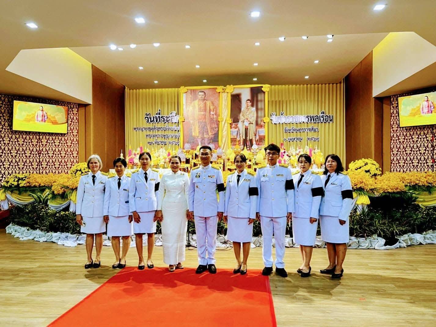 นางอังสนา วาริยศ สรรพากรพื้นที่นครราชสีมา 2 พร้อมตัวแทนเจ้าหน้าที่ในสังกัด ร่วมงานพิธีวางพานพุ่มดอกไม้ ถวายราชสักการะพระบรมสาทิสลักษณ์