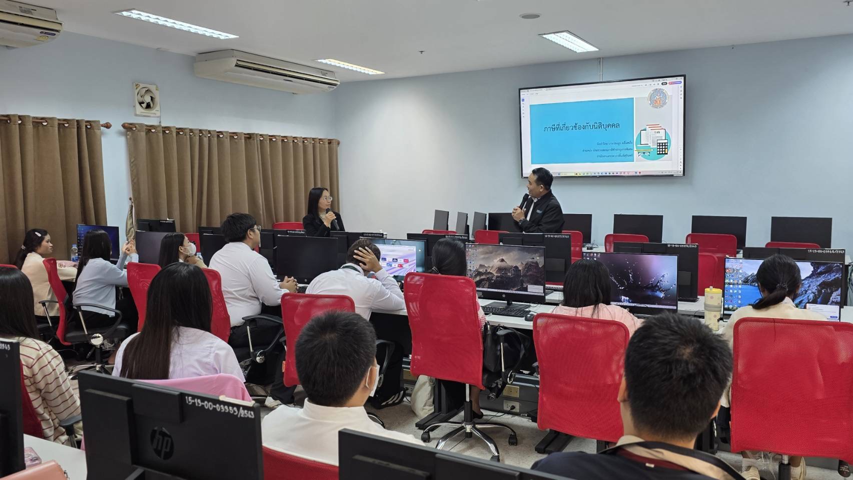 นางเปรมฤดี อุ่นจิตต สรรพากรพื้นที่สุรินทร์ มอบหมายให้ นายสำเร็จ ภูพลผัน นักวิชาการสรรพากรชำนาญการพิเศษ และนางประยูร คลื่นสนั่น นักตรวจสอบภาษีชำนาญการพิเศษ เป็นวิทยากรอบรมเชิงปฏิบัติการ โครงการ Be U Young Smart & Accountants ในหัวข้อ “การปูพื้นฐานภาษีอากรที่ควรรู้” ซึ่งจัดโดย หลักสูตรบัญชีบัณฑิต คณะวิทยาการจัดการ มหาวิทยาลัยราชภัฏสุรินทร์ เพื่อพัฒนาศักยภาพนักศึกษาสาขาบัญชี ให้มีความรู้ ความสามารถ ส่งเสริมทักษะการคิดวิเคราะห์ การแก้ไขปัญหา และการประยุกต์ใช้ความรู้ให้ทันสมัย ทันสถานการณ์ ในวันที่ 19 มีนาคม 2569 เวลา 09.00 น. - 16.00 น. ณ ห้องปฏิบัติการคอมพิวเตอร์ ชั้น 4 อาคาร 44 คณะวิทยาการจัดการ มหาวิทยาลัยราชภัฏสุรินทร์ ต.นอกเมือง อำเภอเมืองสุรินทร์ จังหวัดสุรินทร์
