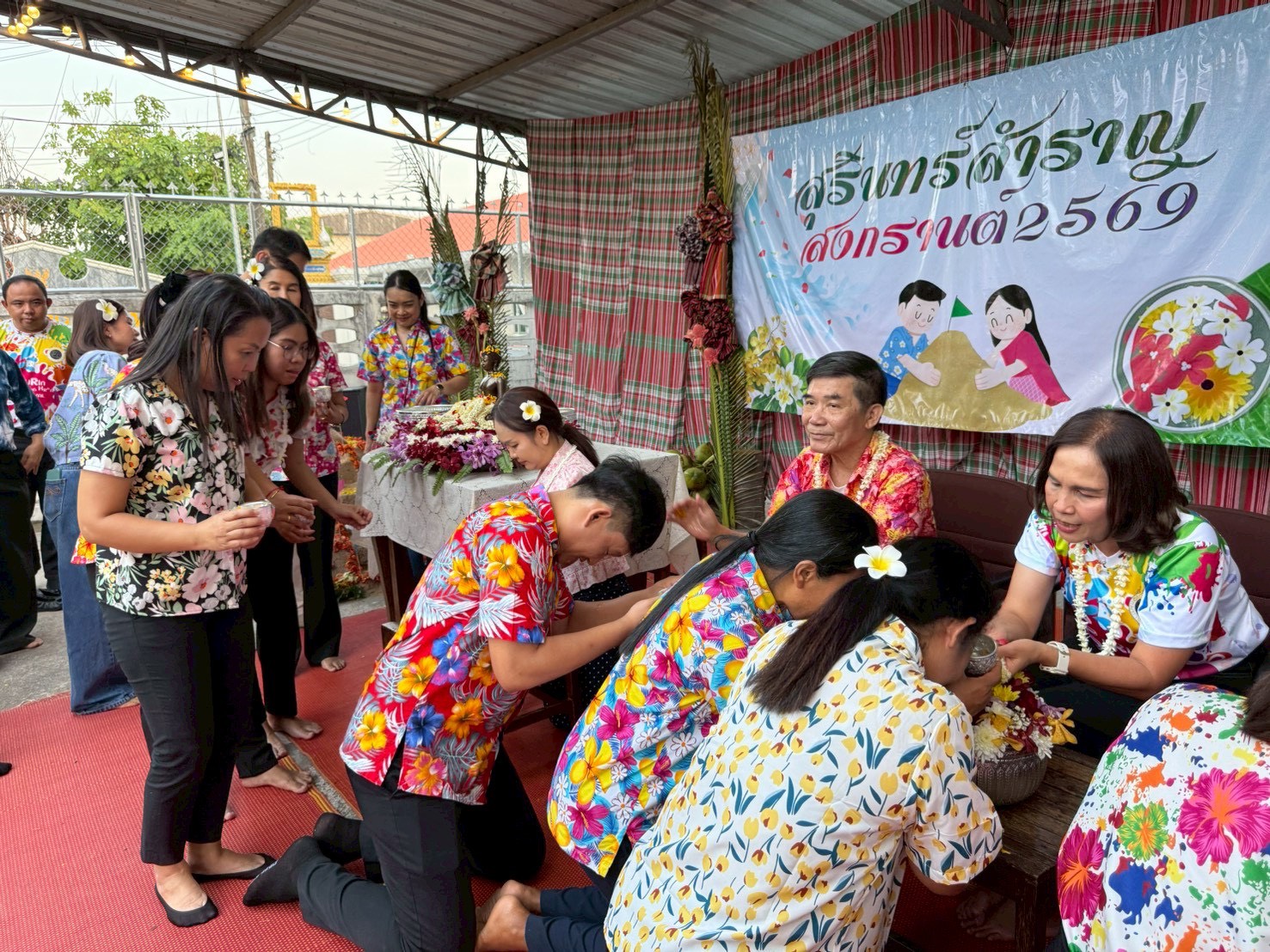 ในช่วงเย็น ได้มีพิธีรดน้ำดำหัวขอพรผู้ใหญ่ 🙇♀️💐 เนื่องในวันขึ้นปีใหม่ไทย สะท้อนถึงเอกลักษณ์และความงดงามของประเพณีไทย 🇹🇭🌺 เพื่อส่งเสริมคุณค่าทางวัฒนธรรม ควบคู่กับการสร้างความผูกพันและความสามัคคีภายในองค์กร 💙 ณ บริเวณบ้านพักสรรพากรพื้นที่สุรินทร์ ✨