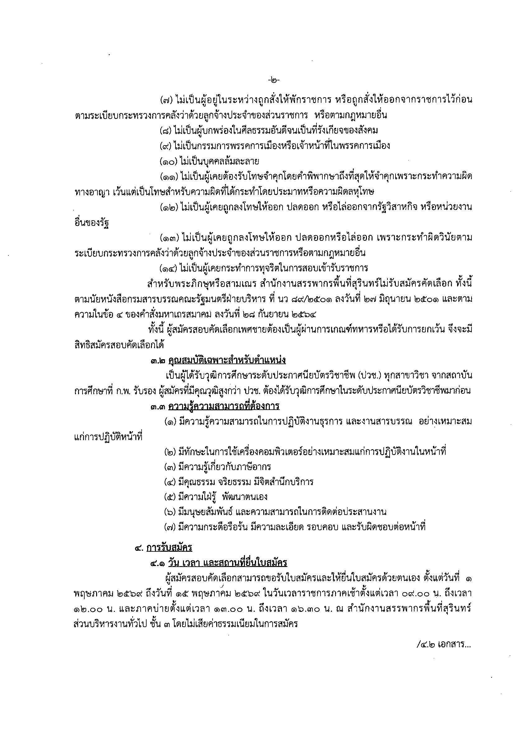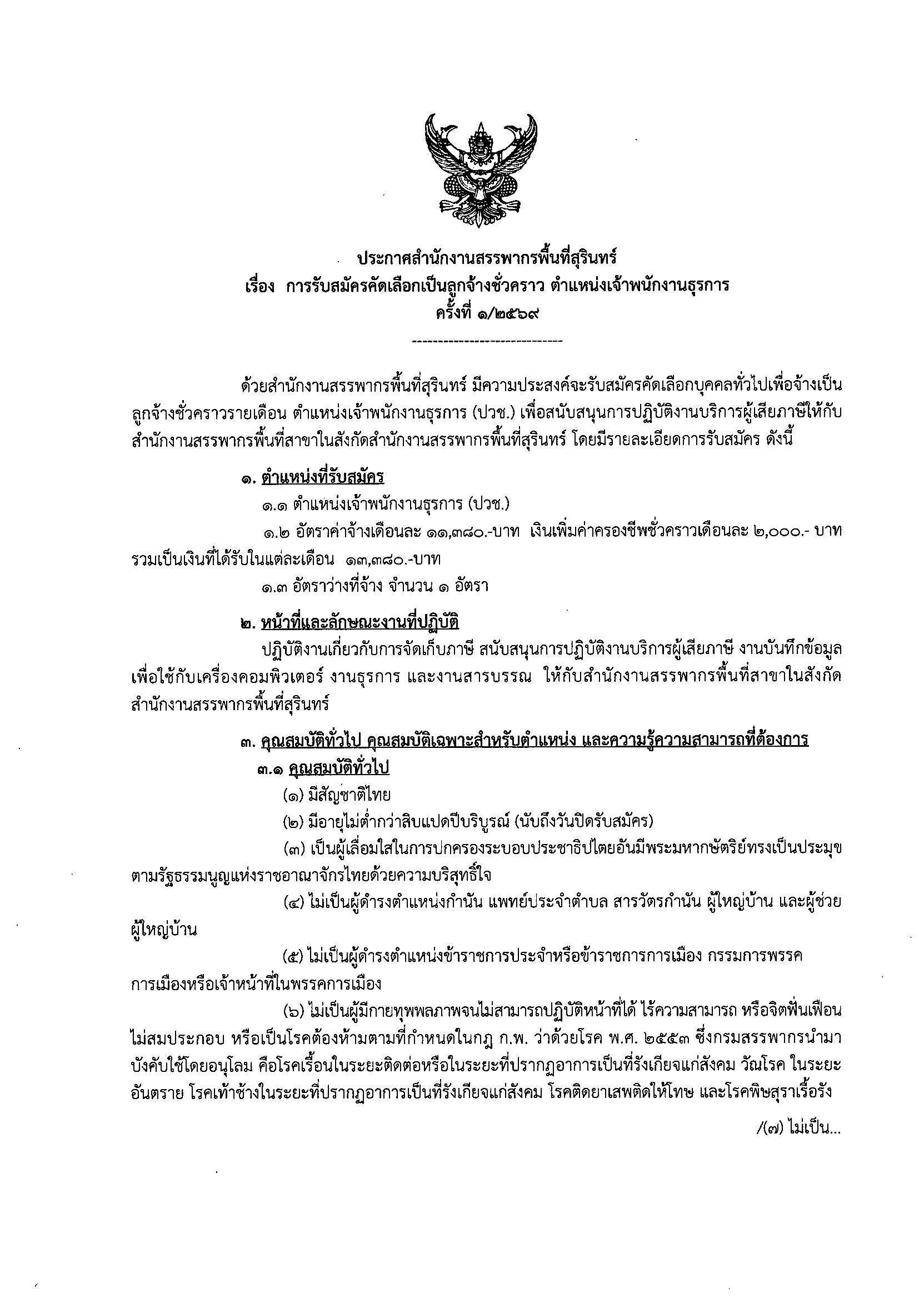 ประกาศสำนักงานสรรพากรพื้นที่สุรินทร์ เรื่อง การรับสมัครคัดเลือกเป็นลูกจ้างชั่วคราว ตำแหน่งเจ้าพนักงานธุรการ