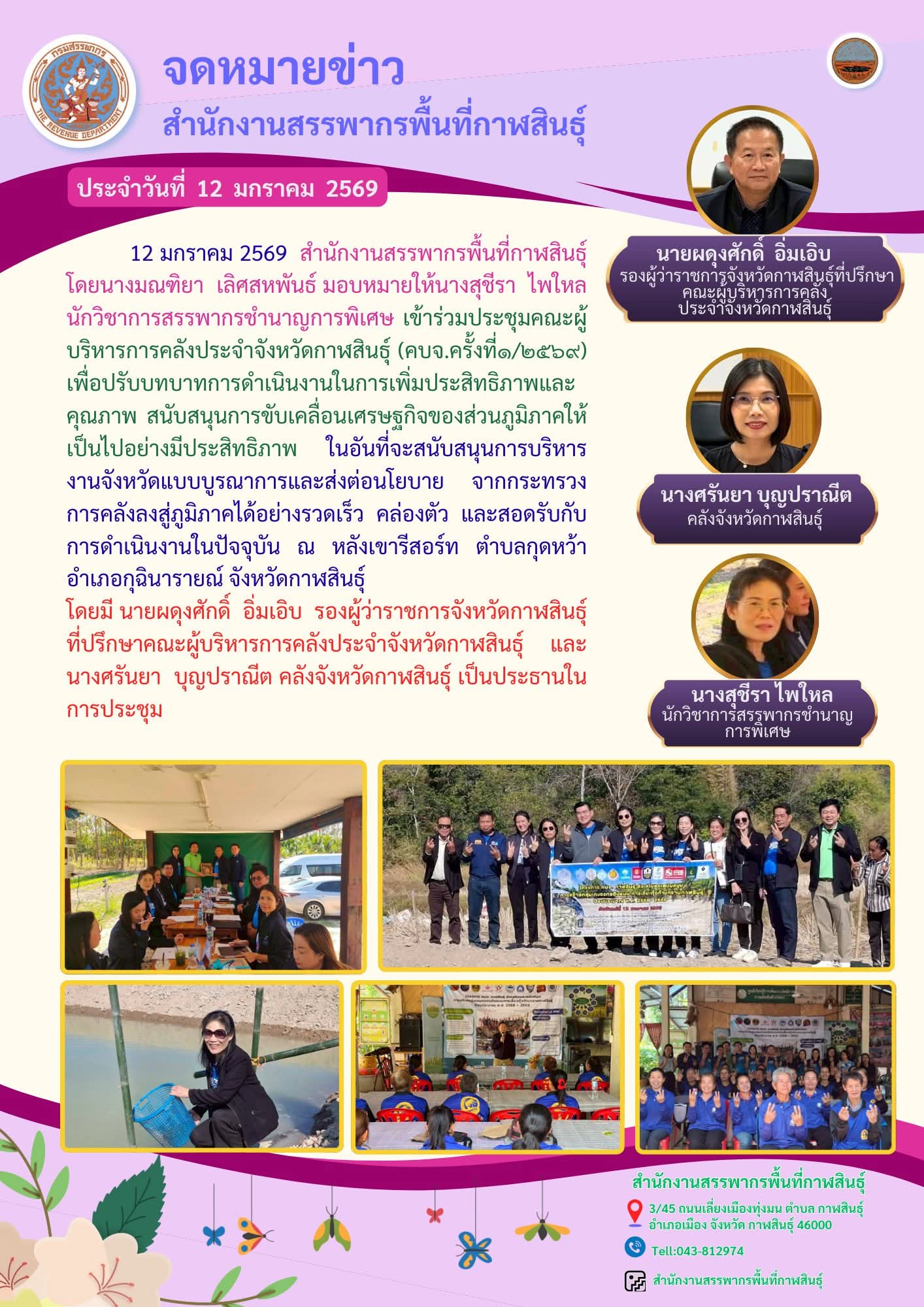 ประชุมคณะผู้บริหารการคลังประจำจังหวัดกาฬสินธุ์ (คบจ.ครั้งที่๑/๒๕๖๙)