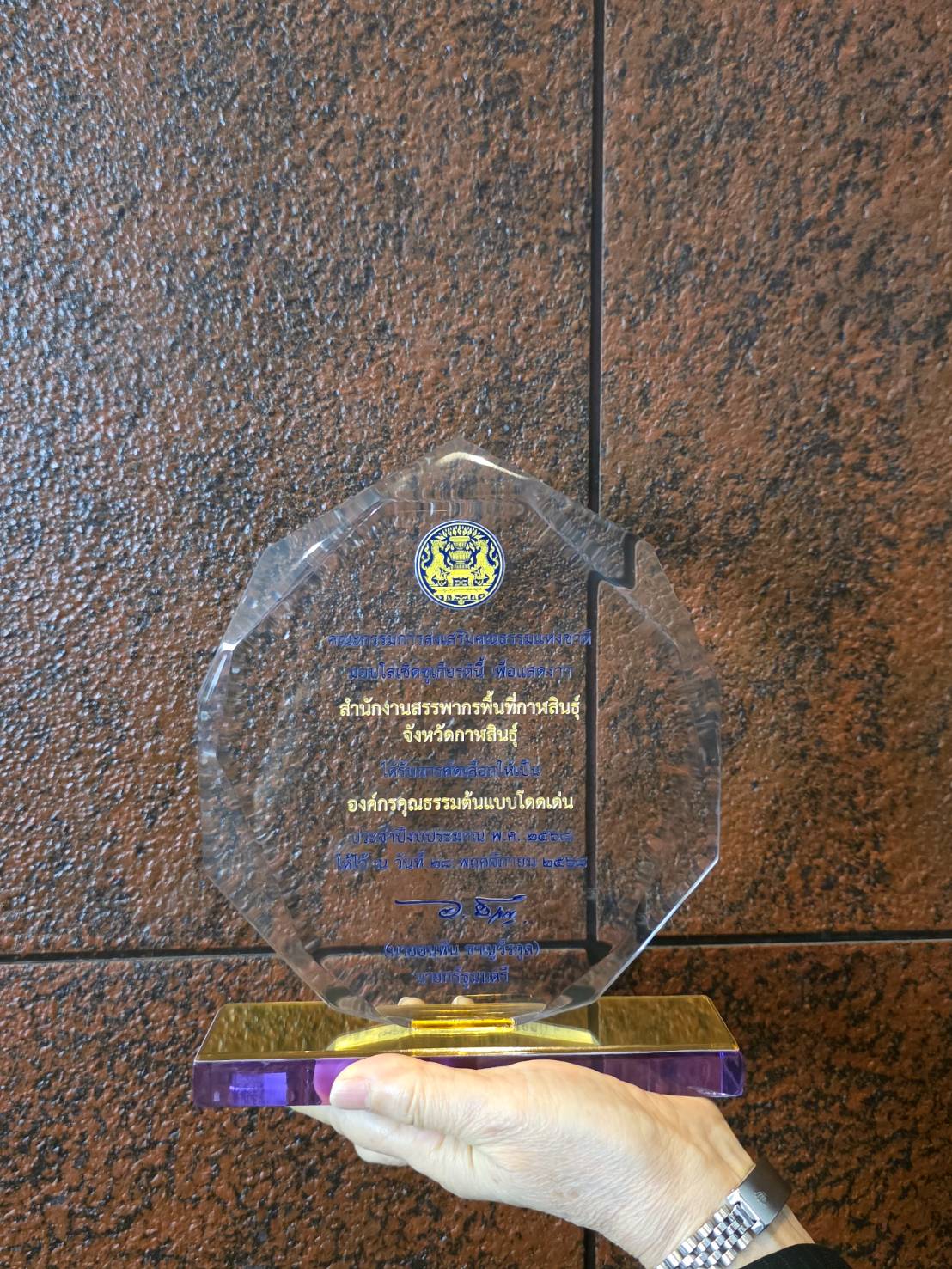 นางมณฑิยา เลิศสหพันธ์ สรรพากรพื้นที่กาฬสินธุ์ เข้ารับโล่เชิดชูเกียรติ องค์กร คุณธรรมต้นแบบโดดเด่น ประจำปีงบประมาณ พ.ศ. 2569