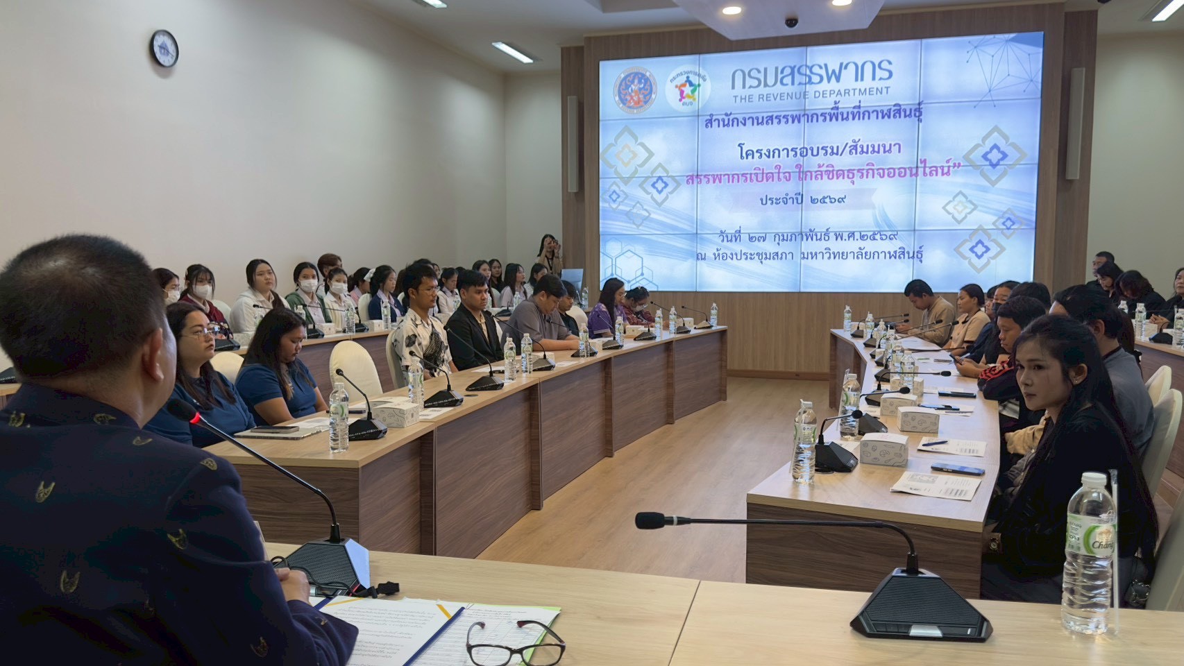 สำนักงานสรรพากรพื้นที่กาฬสินธุ์โดยนางมณฑิยา เลิศสหพันธ์ สรรพากรพื้นที่กาฬสินธุ์ กล่าวรายงานในพิธีเปิดโครงการสัมมนา "สรรพากรเปิดใจใกล้ชิดธุรกิจออนไลน์" เพื่อเสริมสร้างความรู้ความเข้าใจให้กับผู้ประกอบการก่อนการยื่นแบบแสดงรายการภาษีเงินได้บุคคลธรรมดา/ภาษีเงินได้นิติบุคคล และภาษีมูลค่าเพิ่ม เพื่อเป็นการแจ้งเตือนล่วงหน้า และตรวจสอบความพร้อมเบื้องต้นก่อนการยื่นแบบฯ สำหรับผู้ประกอบการ เสริมสร้างความรู้ความเข้าใจที่ถูกต้องเกี่ยวกับหลักเกณฑ์ วิธีการ และประเด็นความเสี่ยงในการยื่นแบบ รวมถึงเปิดโอกาสให้ผู้ประกอบการซักถามข้อสงสัยและรับคำแนะนำจากเจ้าหน้าที่โดยตรง เพื่อให้การเสียภาษีถูกต้องเป็นปัจจุบัน โดยมีนายผดุงศักดิ์ อิ่มเอิบ รองผู้ว่าราชการจังหวัดกาฬสินธุ์ เป็นประธาน และมีประธานหอการค้าจังหวัดกาฬสินธุ์ ในฐานะที่ปรึกษาคณะผู้บริหารการคลังประจำจังหวัดกาฬสินธุ์ ตลอดจนคณะผู้บริหารการคลังประจำจังหวัดกาฬสินธุ์เข้าร่วมเป็นเกียรติ ในการนี้ได้มีการแลกเปลี่ยนเรียนรู้ศูนย์ข้อมูลข่าวสารราชการ และองค์กรคุณธรรมทั้ง 3 มิติ 5 ประการ ของสำนักงานสรรพากรพื้นที่กาฬสินธุ์ ไปพร้อมกัน ณ ห้องประชุมสภามหาวิทยาลัยกาฬสินธุ์ ชั้น 3 อาคารสำนักงานอธิการบดีมหาวิทยาลัยกาฬสินธุ์ มหาวิทยาลัยกาฬสินธุ์ อำเภอเมืองกาฬสินธุ์ จังหวัดกาฬสินธุ์
