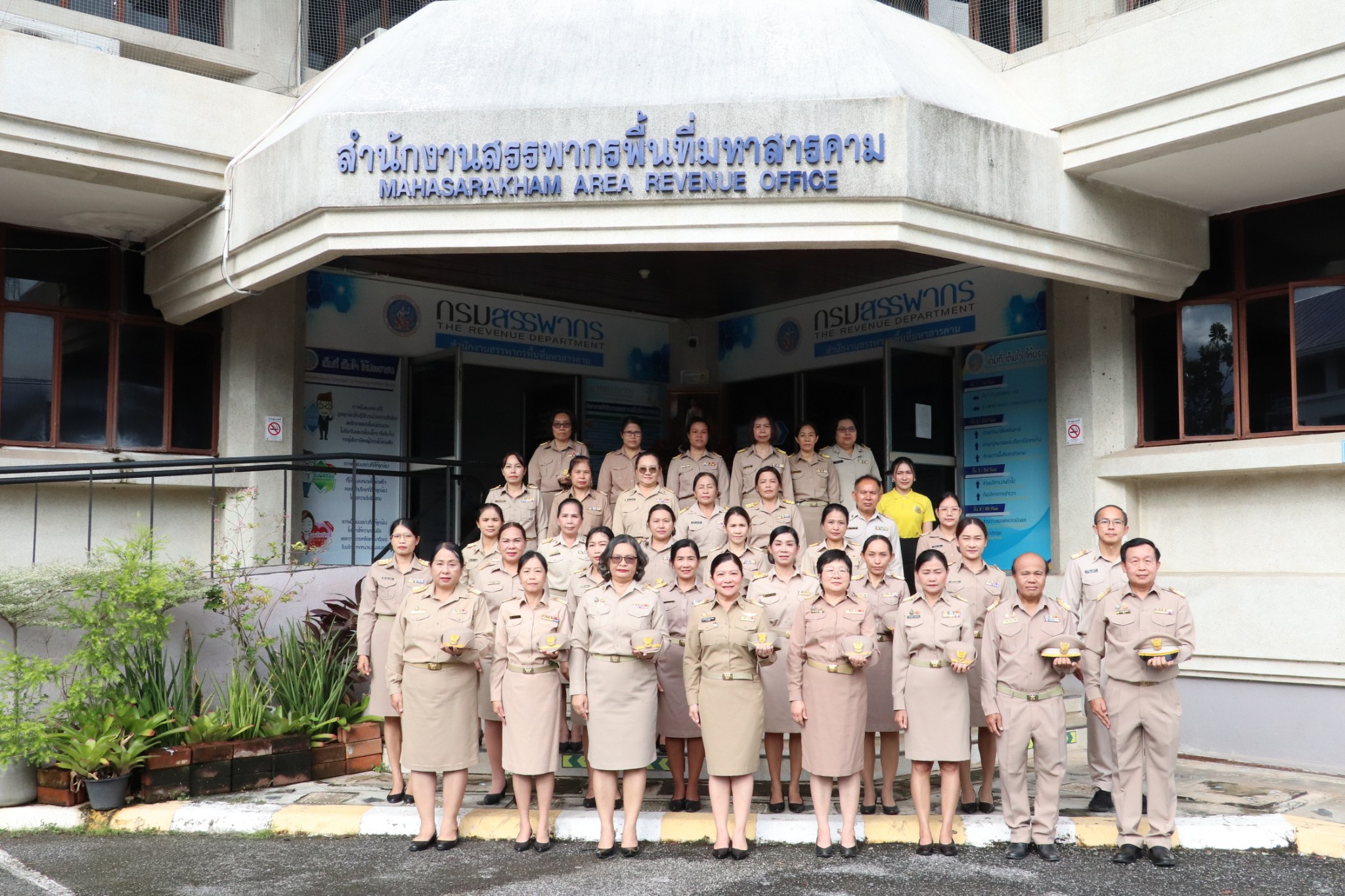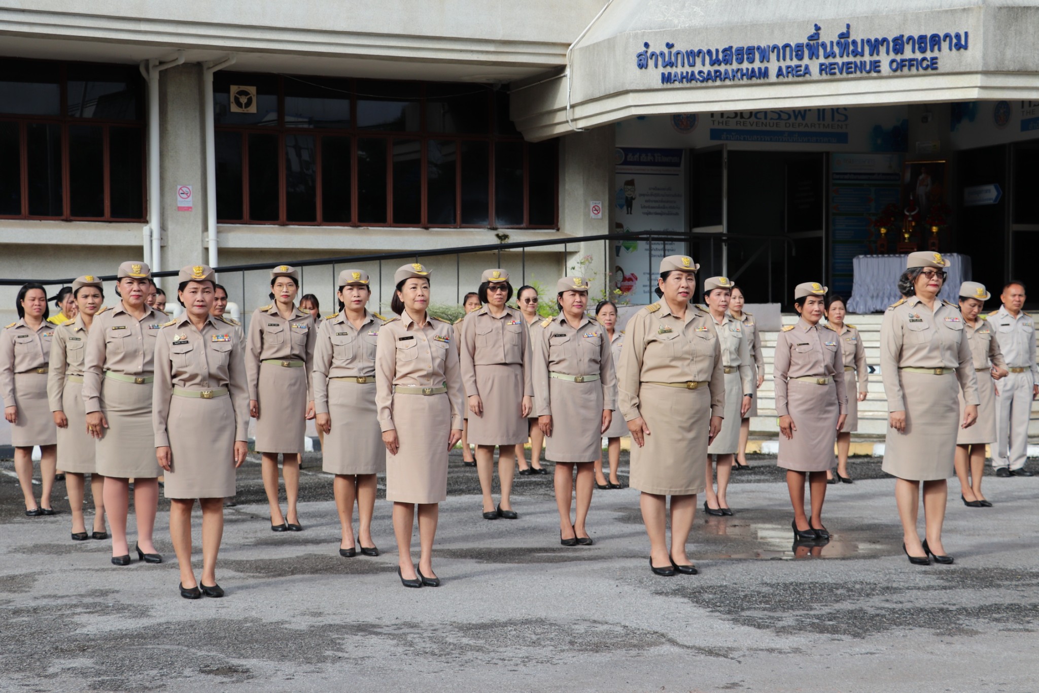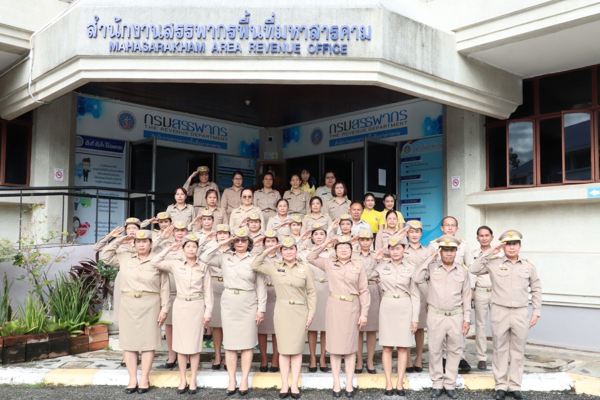 นางสาววิลาวัณย์ เอกประเสริฐกุล สรรพากรพื้นที่มหาสารคาม พร้อมด้วยข้าราชการ พนักงานราชการ และลูกจ้างของสำนักงานสรรพากรพื้นที่มหาสารคาม จัดกิจกรรมเคารพธงชาติ และร้องเพลงชาติไทย เนื่องในวันพระราชทานธงชาติไทย 28 กันยายน (Thai National Flag Day) ประจำปี 2568 อันเป็นการแสดงออกถึงความจงรักภักดีต่อ ชาติ ศาสนา พระมหากษัตริย์ และการเป็นข้าราชการที่ดี รู้รักสามัคคี ณ บริเวณหน้าเสาธง สำนักงานสรรพากรพื้นที่มหาสารคาม เมื่อวันที่ 29 กันยายน 2568