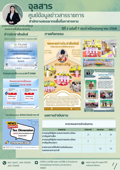 จุลสาร ศูนย์ข้อมูลข่าวสารของราชการ สำนักงานสรรพากรพื้นที่มหาสารคาม ปีที่ 2 ฉบับที่ 7 ประจำเดือนกรกฎาคม 2568