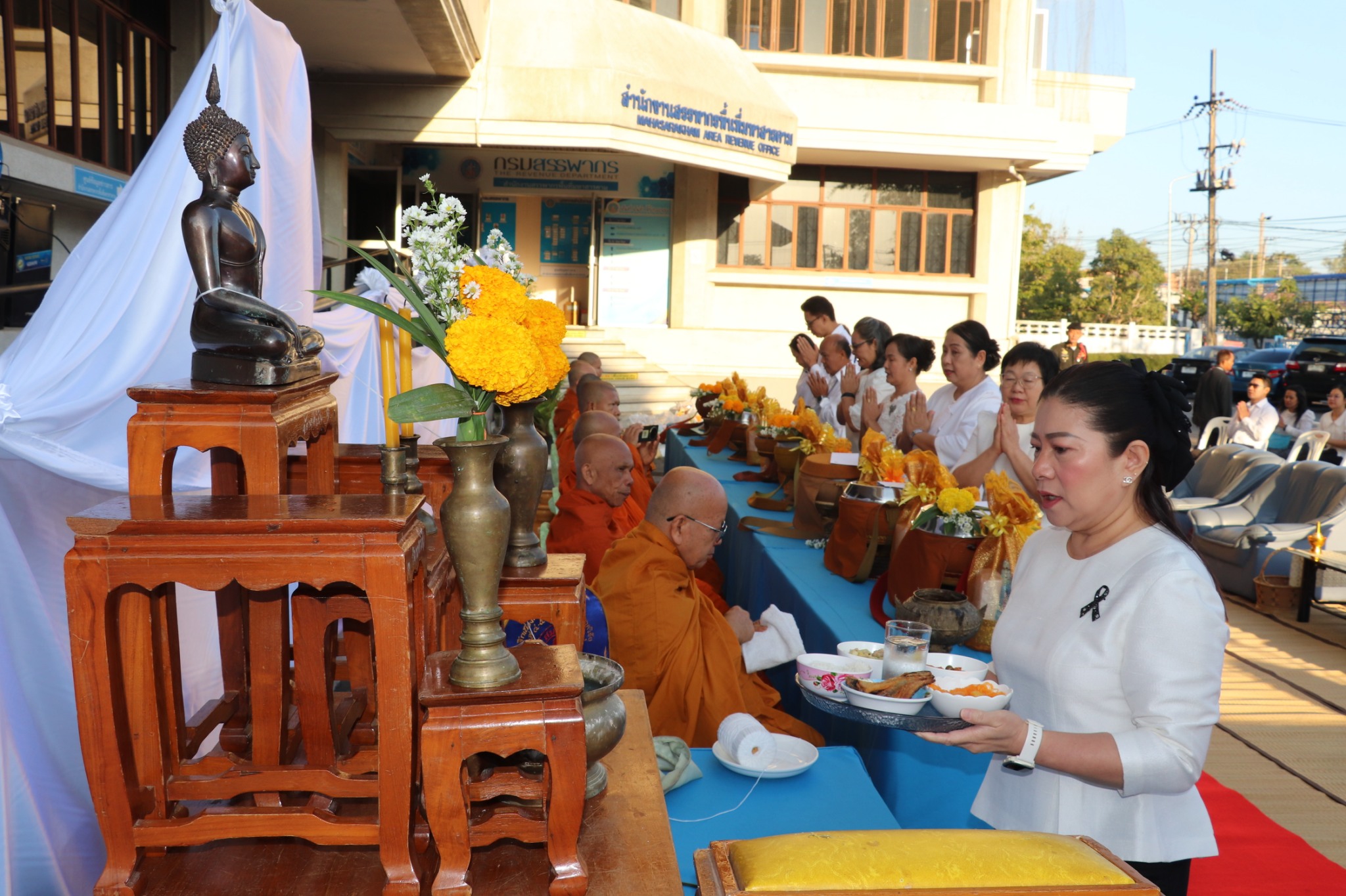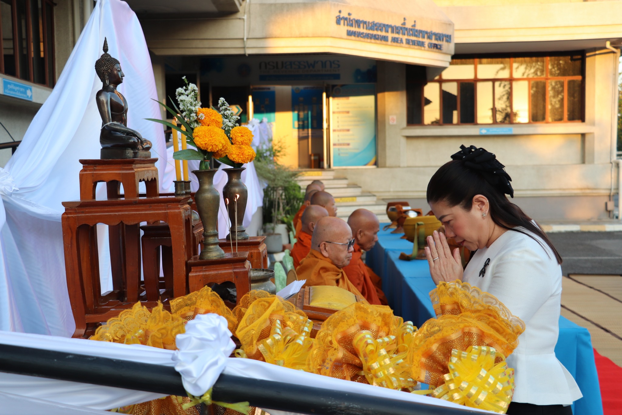 วันที่ 6 มกราคม 2569 สำนักงานสรรพากรพื้นที่มหาสารคาม โดยนางสาววิลาวัณย์ เอกประเสริฐกุล สรรพากรพื้นที่มหาสารคาม พร้อมด้วยคณะผู้บริหารและบุคลากรสำนักงานสรรพากรพื้นที่มหาสารคาม และสรรพากรพื้นที่สาขาในสังกัด ร่วมพิธีทำบุญตักบาตร ข้าวสาร อาหารแห้ง และไหว้พระภูมิเจ้าที่ ศาลตายาย เนื่องในโอกาสวันขั้นปีใหม่ 2569 ณ สำนักงานสรรพากรพื้นที่มหาสารคาม