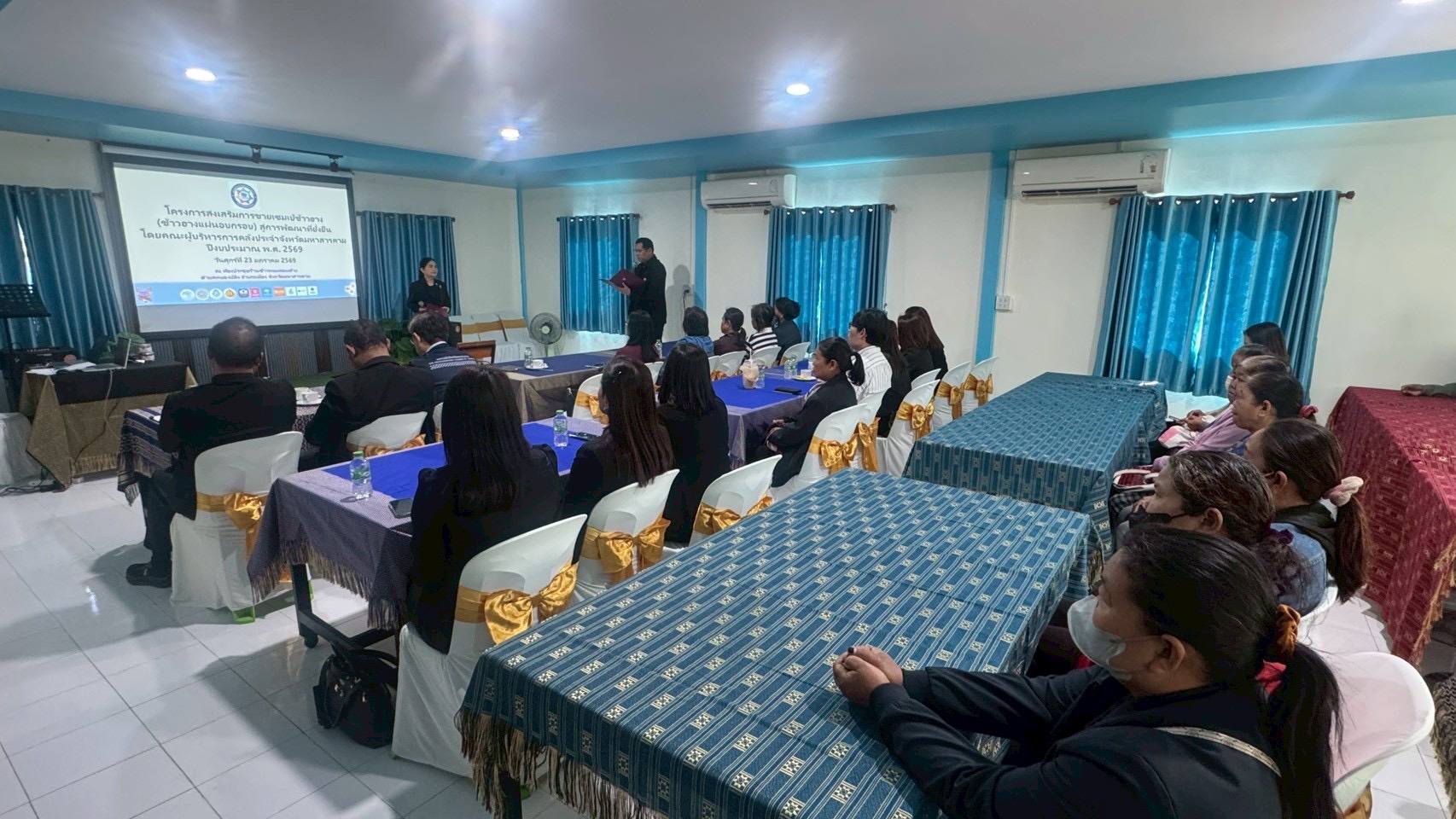 วันที่ 23 มกราคม 2569 นางสาววิลาวัณย์ เอกประเสริฐกุล สรรพากรพื้นที่มหาสารคาม เข้าร่วม “โครงการส่งเสริมการขายเซมเบ้ข้าวฮาง (ข้าวฮางแผ่นอบกรอบ) สุู่การพัฒนาที่ยั่งยืน โดยคณะผู้บริหารการคลังประจำจังหวัดมหาสารคาม ปีงบประมาณ พ.ศ. 2569" เพื่อส่งเสริมให้กลุ่มวิสาหกิจชุมชนเกษตรวิถีเชิงท่องเที่ยวทุ่งนาทอง มีความรู้ความเข้าใจด้านตลาด และการพัฒนาช่องทางการตลาด การประชาสัมพันธ์ การจัดทำสื่อโฆษณา และสนับสนุนการจัดทำสื่อโฆษณาให้ผลิตภัณฑ์ขนมเซมเบ้ข้าวฮาง (ข้าวฮางแผ่นอบกรอบ) เป็นที่รู้จัก อย่างกว้างขวางในจังหวัด และระดับประเทศ เป็นกลุ่มต้นแบบ (Best Practice) ในการแปรรูปข้าวฮาง เพื่อสร้างมูลค่าเพิ่ม ทางเศรษฐกิจ ณ ห้องประชุมร้านข้าวหอมลอมฟาง ตำบลหนองปลิง อำเภอเมืองมหาสารคาม จังหวัดมหาสารคาม โดยมีนางรัตนาภรณ์ อัศวนุภาพ คลังจังหวัดมหาสารคาม ประธาน คบจ. มหาสารคาม เป็นประธานเปิดโครงการ