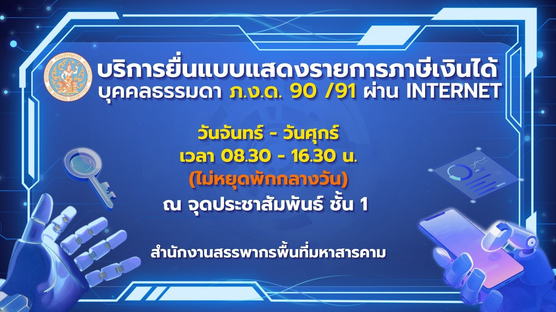📣สำนักงานสรรพากรพื้นที่มหาสารคาม เปิดให้บริการยื่นแบบแสดงรายการภาษีเงินได้บุคคล (ภ.ง.ด.90/91) ณ จุดประชาสัมพันธ์ ชั้น 1 ในวันจันทร์ – ศุกร์ เวลา 08.30–16.30 น. (ไม่หยุดพักกลางวัน)