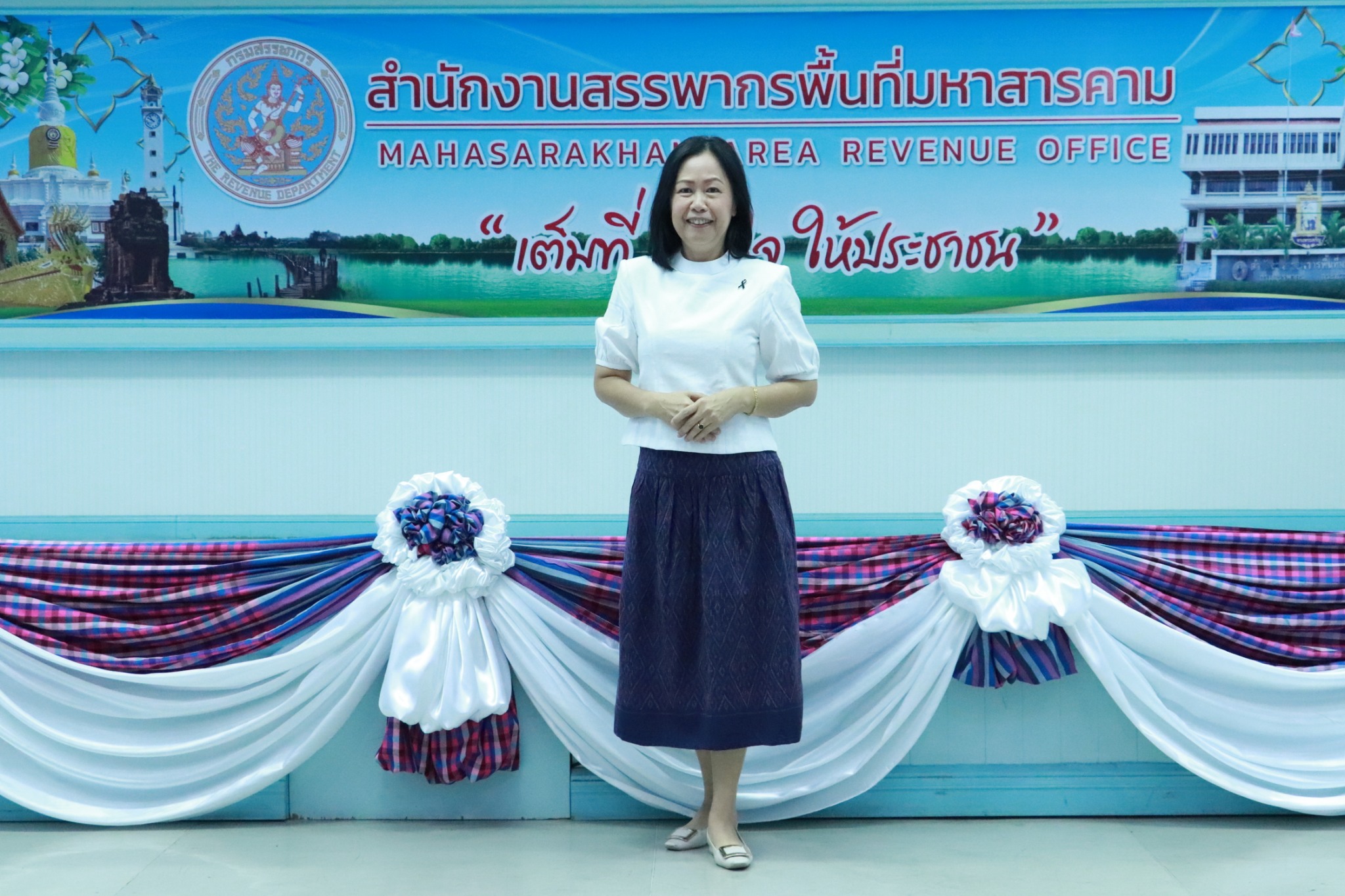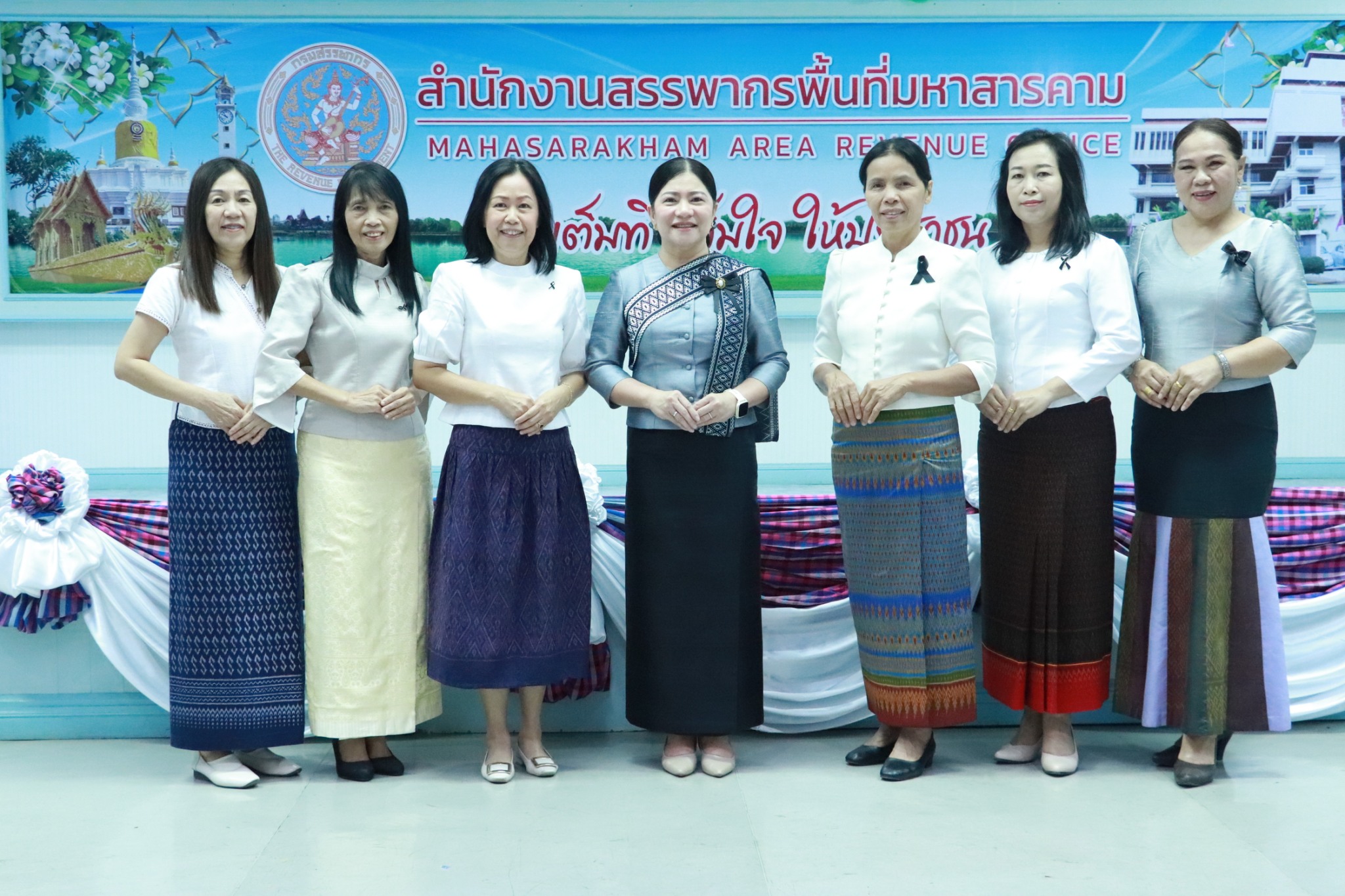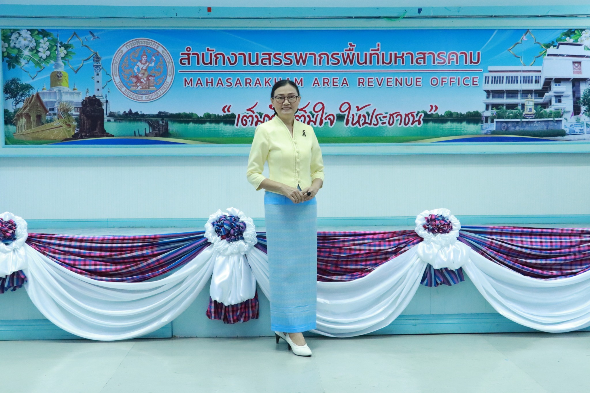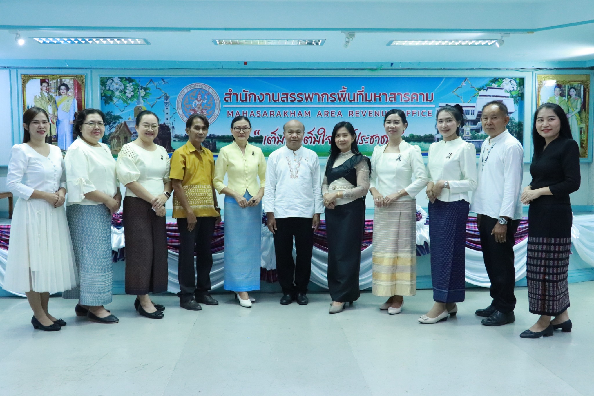ภูมิใจ แต่งไทยทั้งแผ่นดินสำนักงานสรรพากรพื้นที่มหาสารคาม นำโดย นางสาววิลาวัณย์ เอกประเสริฐกุล สรรพากรพื้นที่มหาสารคาม พร้อมด้วยบุคลากรในสังกัด