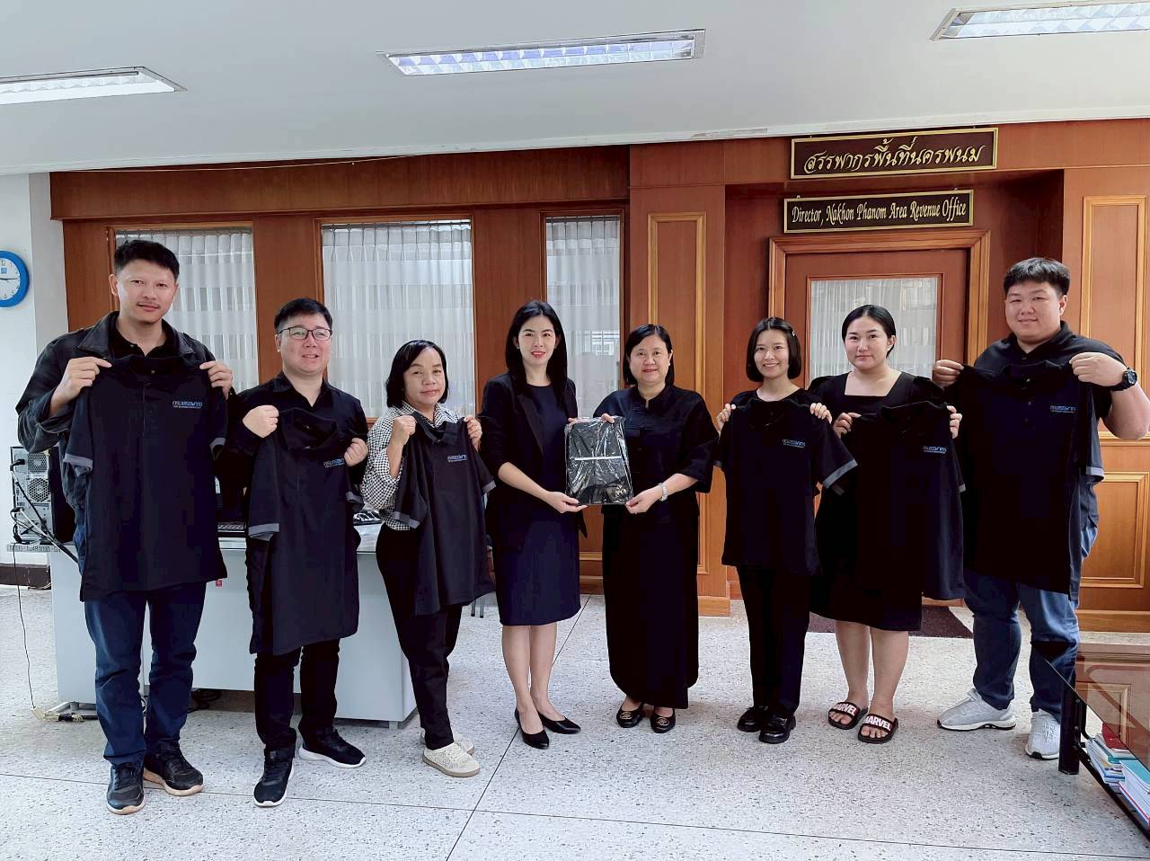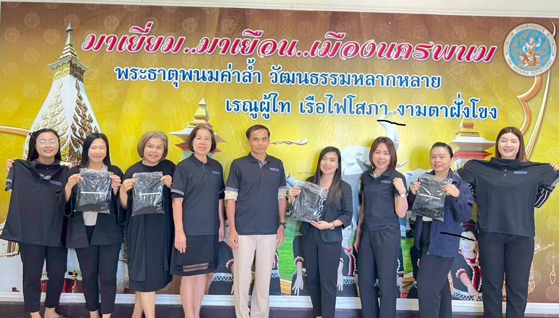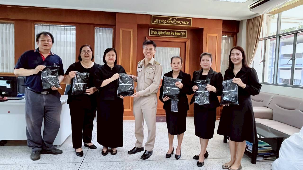นางสาวสายฝน แซมเพชร สรรพากรพื้นที่นครพนม มอบเสื้อยืดโปโลสีดำเพื่อสวมใส่แสดงความอาลัยไว้ทุกข์ แด่สมเด็จพระนางเจ้าสิริกิติ์ พระบรมราชชินีนาถ พระบรมราชชนนีพันปีหลวง เพื่อการแต่งกายตามแนวทางการไว้อาลัยตามมาตรการช่วงไว้ทุกข์แก่ข้าราชการ พนักงาน และลูกจ้างในสังกัด โดยมีกำหนด 1 ปี ตั้งแต่ วันที่ 25 ตุลาคม พ.ศ. 2568 เป็นต้นไป
