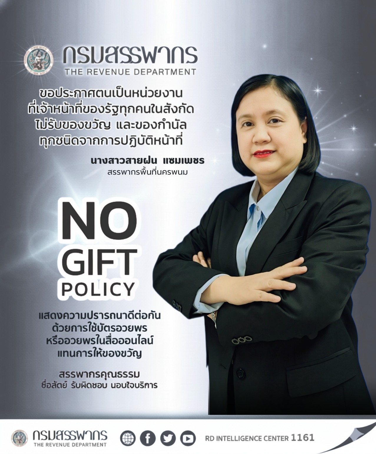 นางสาวสายฝน แซมเพชร สรรพากรพื้นที่นครพนม มอบเสื้อยืดโปโลสีดำเพื่อสวมใส่แสดงความอาลัยไว้ทุกข์ แด่สมเด็จพระนางเจ้าสิริกิติ์ พระบรมราชชินีนาถ พระบรมราชชนนีพันปีหลวง เพื่อการแต่งกายตามแนวทางการไว้อาลัยตามมาตรการช่วงไว้ทุกข์แก่ข้าราชการ พนักงาน และลูกจ้างในสังกัด โดยมีกำหนด 1 ปี ตั้งแต่ วันที่ 25 ตุลาคม พ.ศ. 2568 เป็นต้นไป
