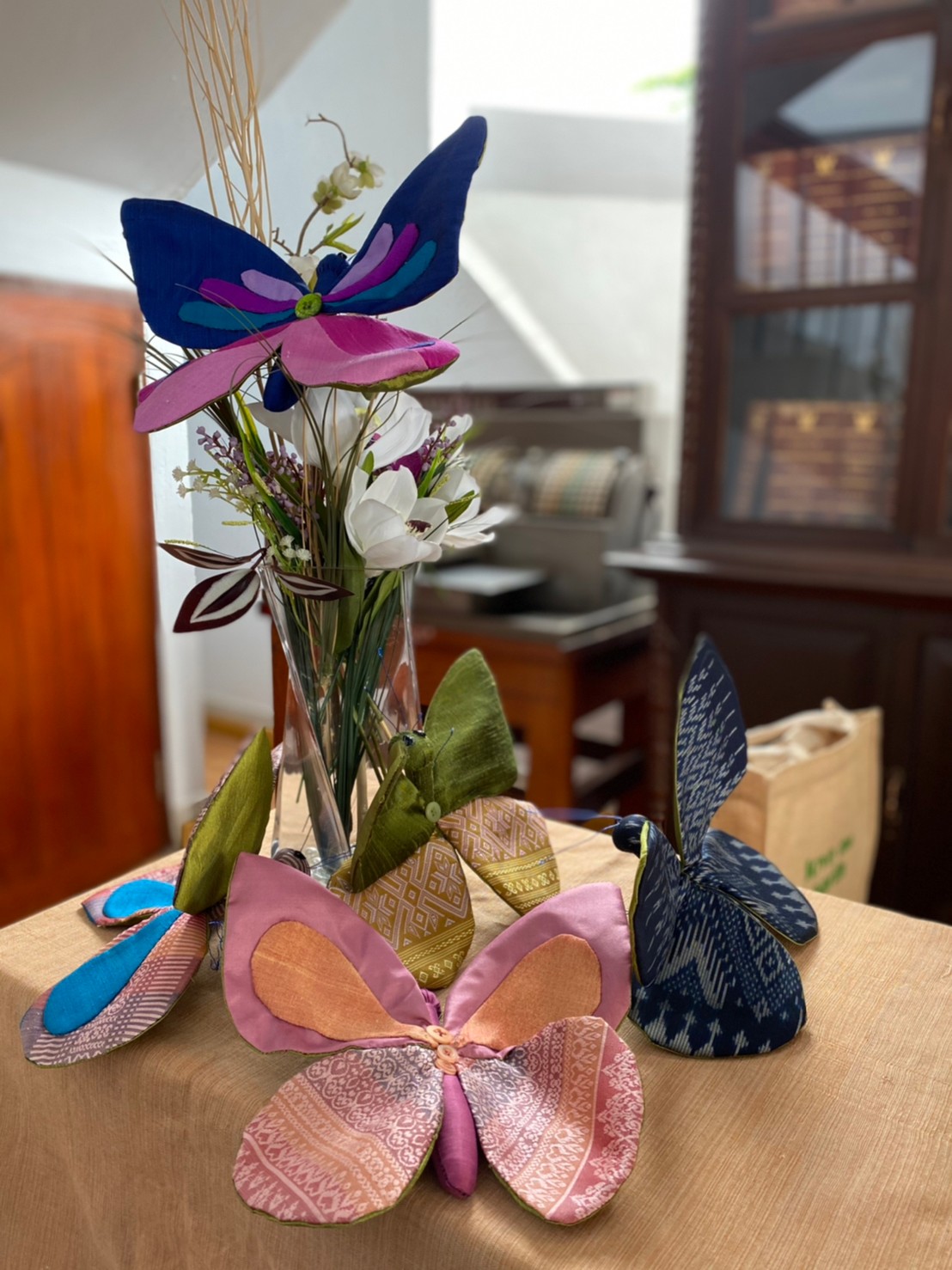 ประดิษฐ์ผีเสื้อจากผ้าไหม ผ้าไทย