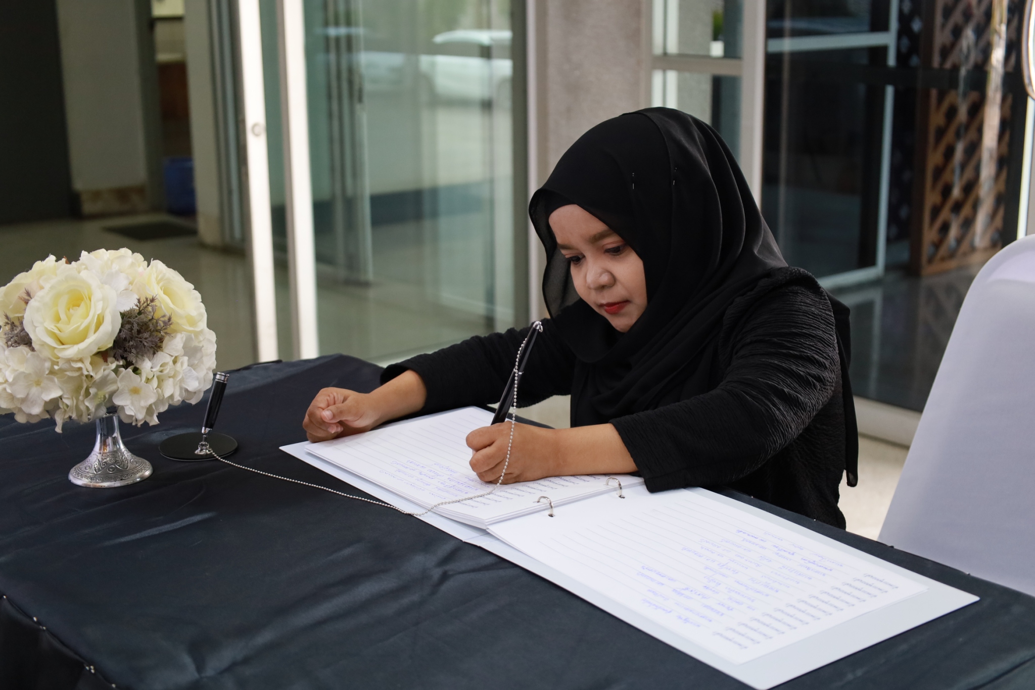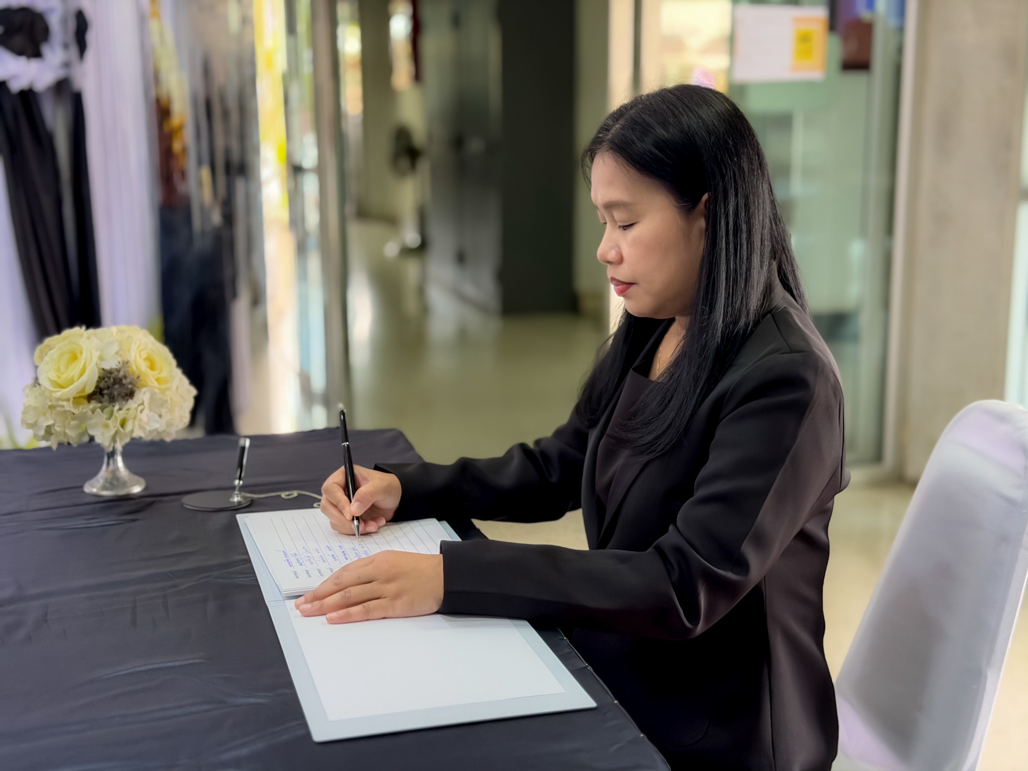 พิธีลงนาม ถวายความอาลัย เบื้องหน้าพระฉายาลักษณ์ สมเด็จพระนางเจ้าสิริกิติ์ พระบรมราชินีนาถ พระบรม ราชชนนีพันปีหลวง เพื่อแสดงความจงรักภักดีและน้อมรำลึกในพระมหากรุณาธิคุณอันหาที่สุดมิได้